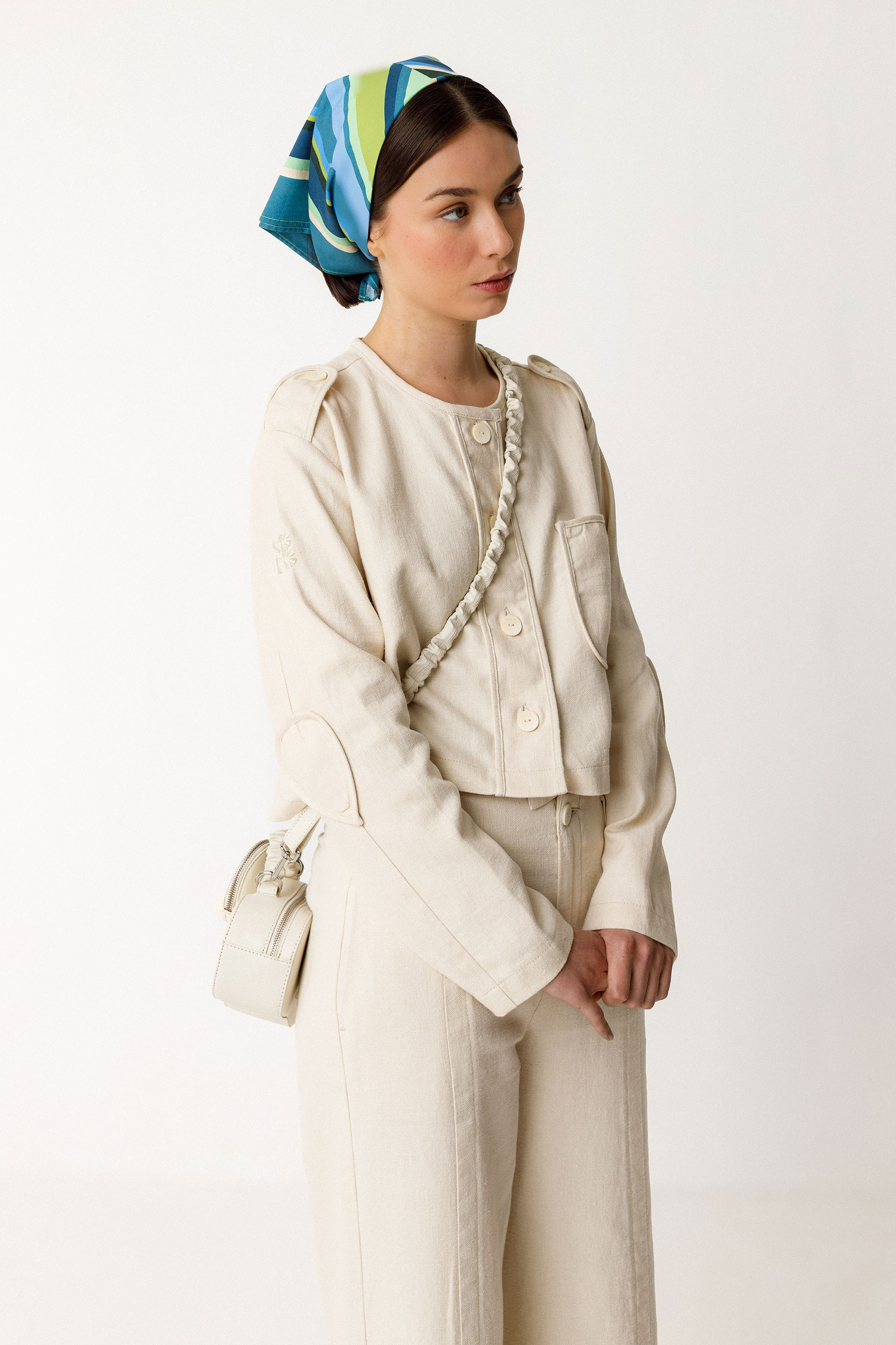 Printed scarf made from GOTS-certified organic cotton. Size: 57 cm x 57 cm.