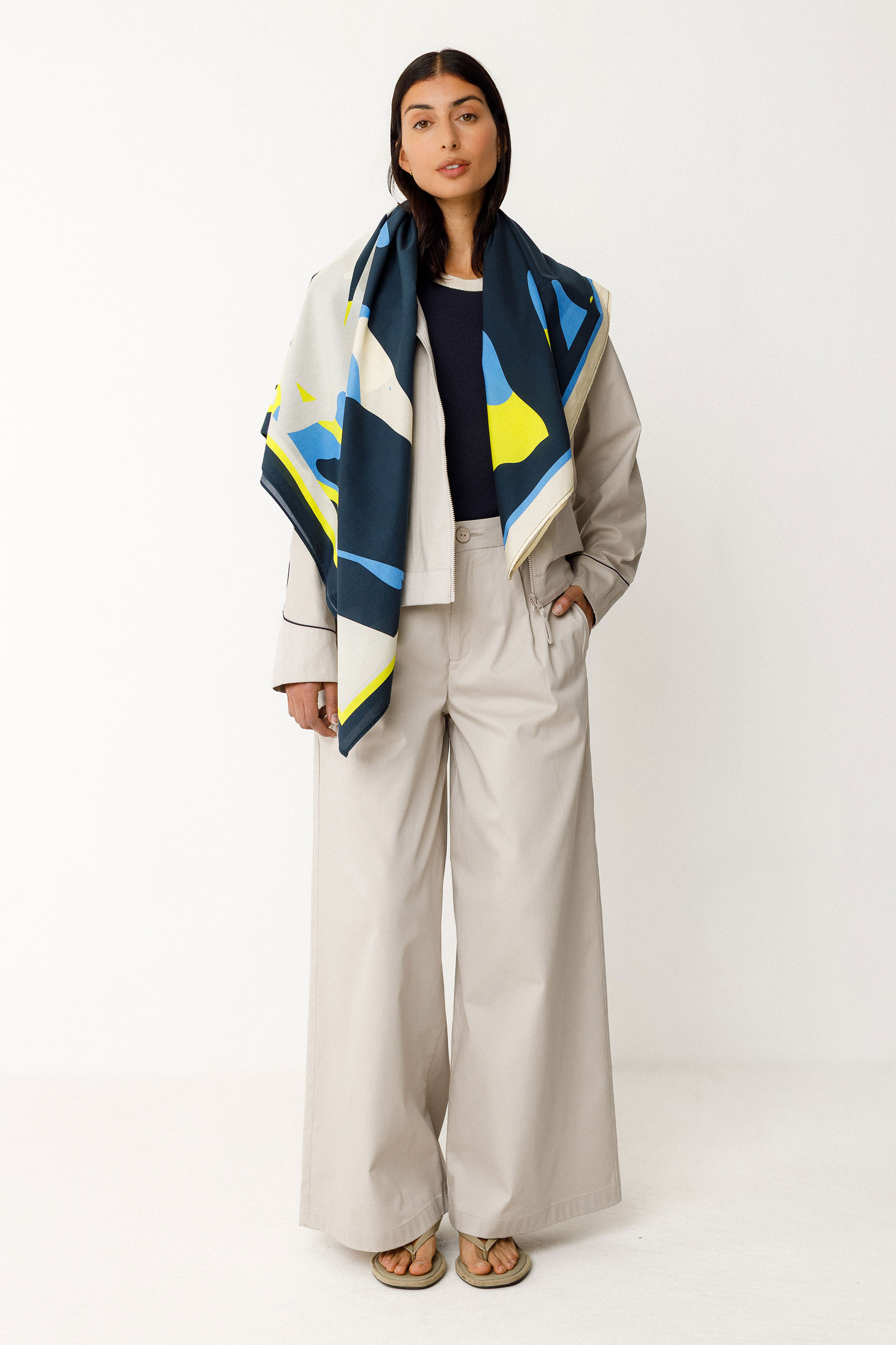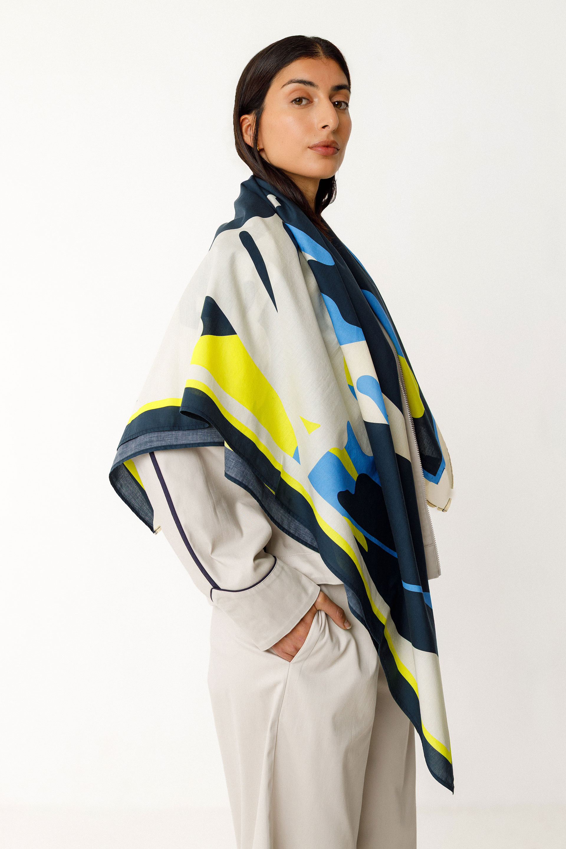 Printed scarf made from GOTS-certified organic cotton. Size: 116 cm x 116 cm.