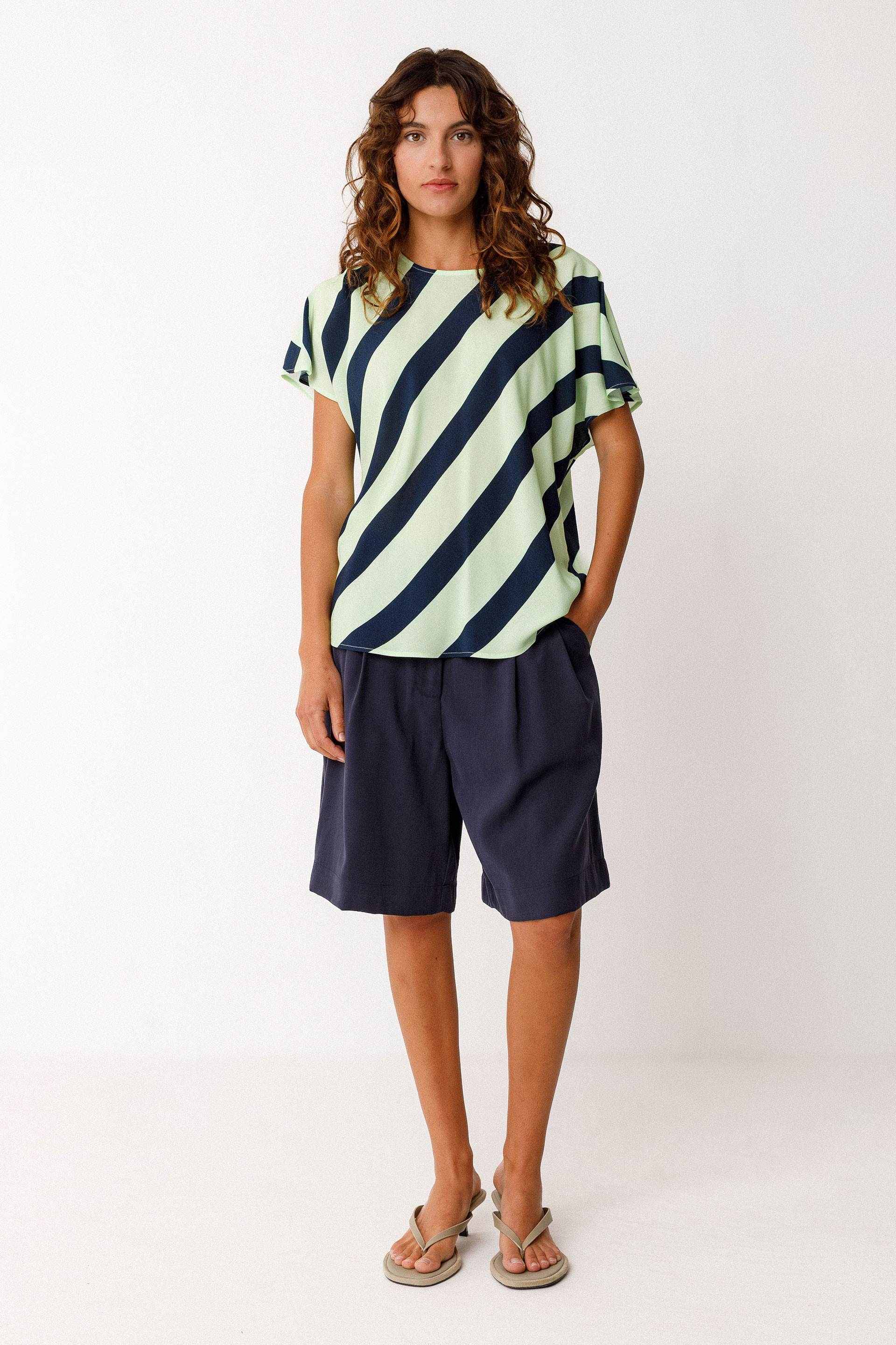 Short trapeze-shaped top with a boat neckline and dropped shoulders.