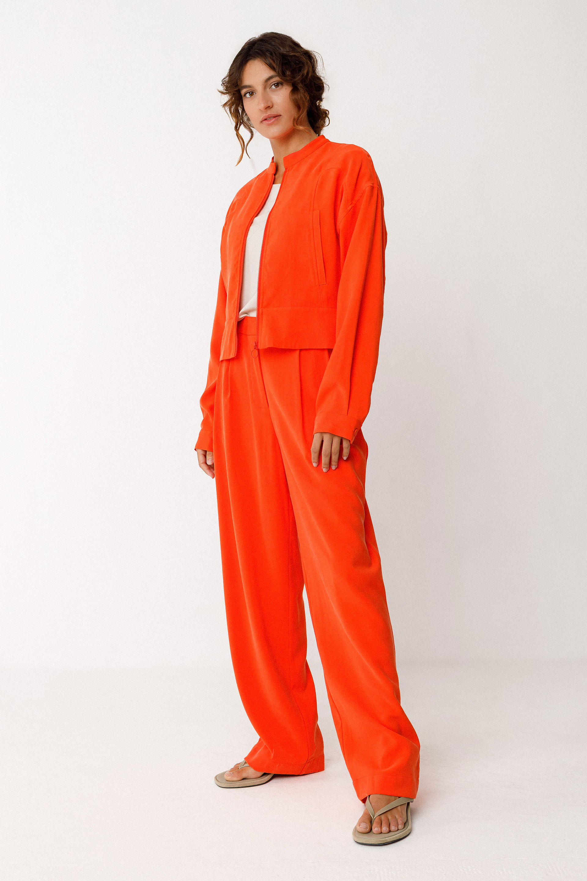 Tailored straight-cut trousers with a classic waist and gathered front. Inner-tailored waistband, welt pockets, and zip fly. Outseam: 107 cm (size 38).