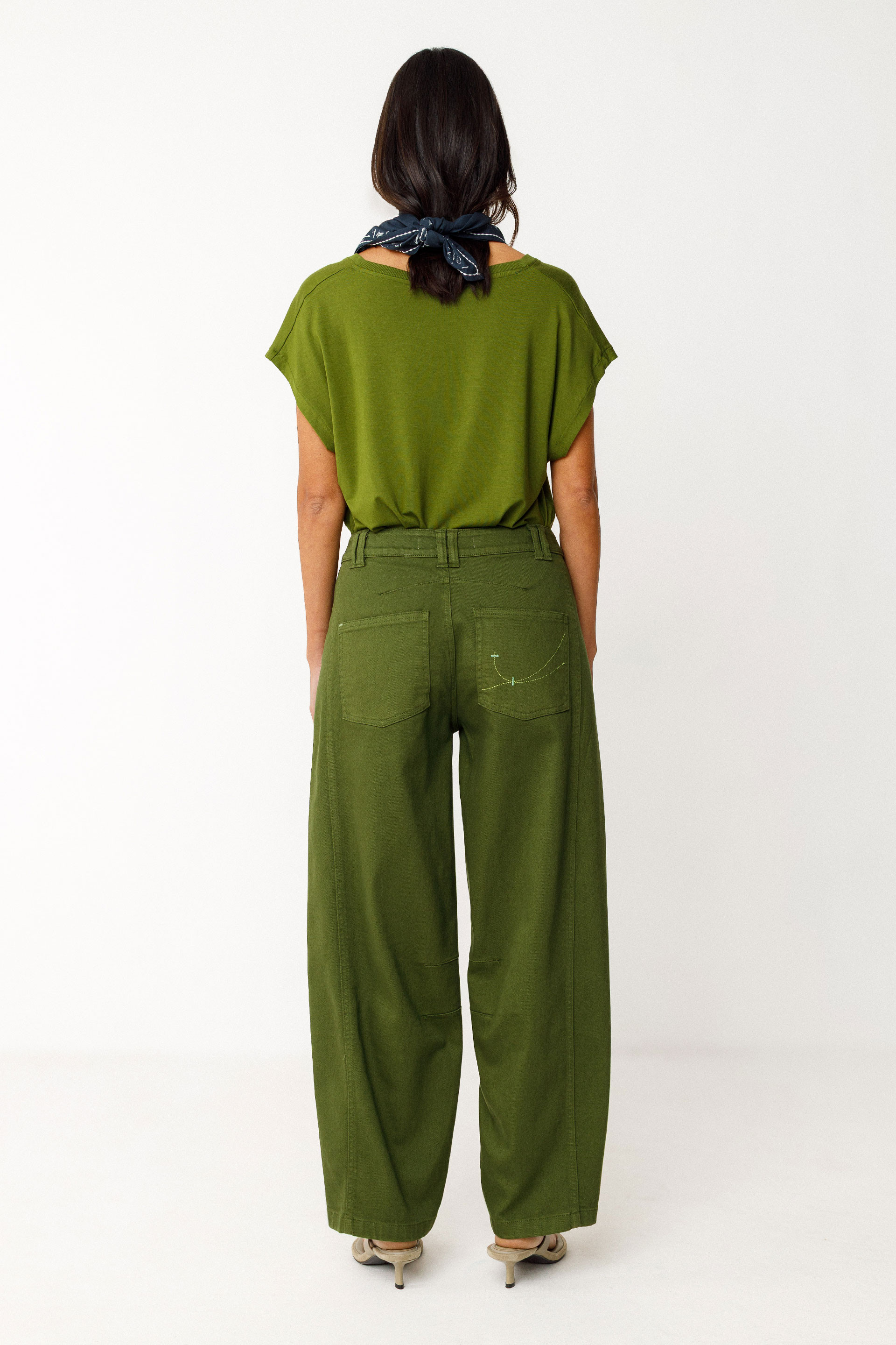 Loose-fitting, ankle-length trousers with a zip front closure. Outseam: 98 cm (size 38).