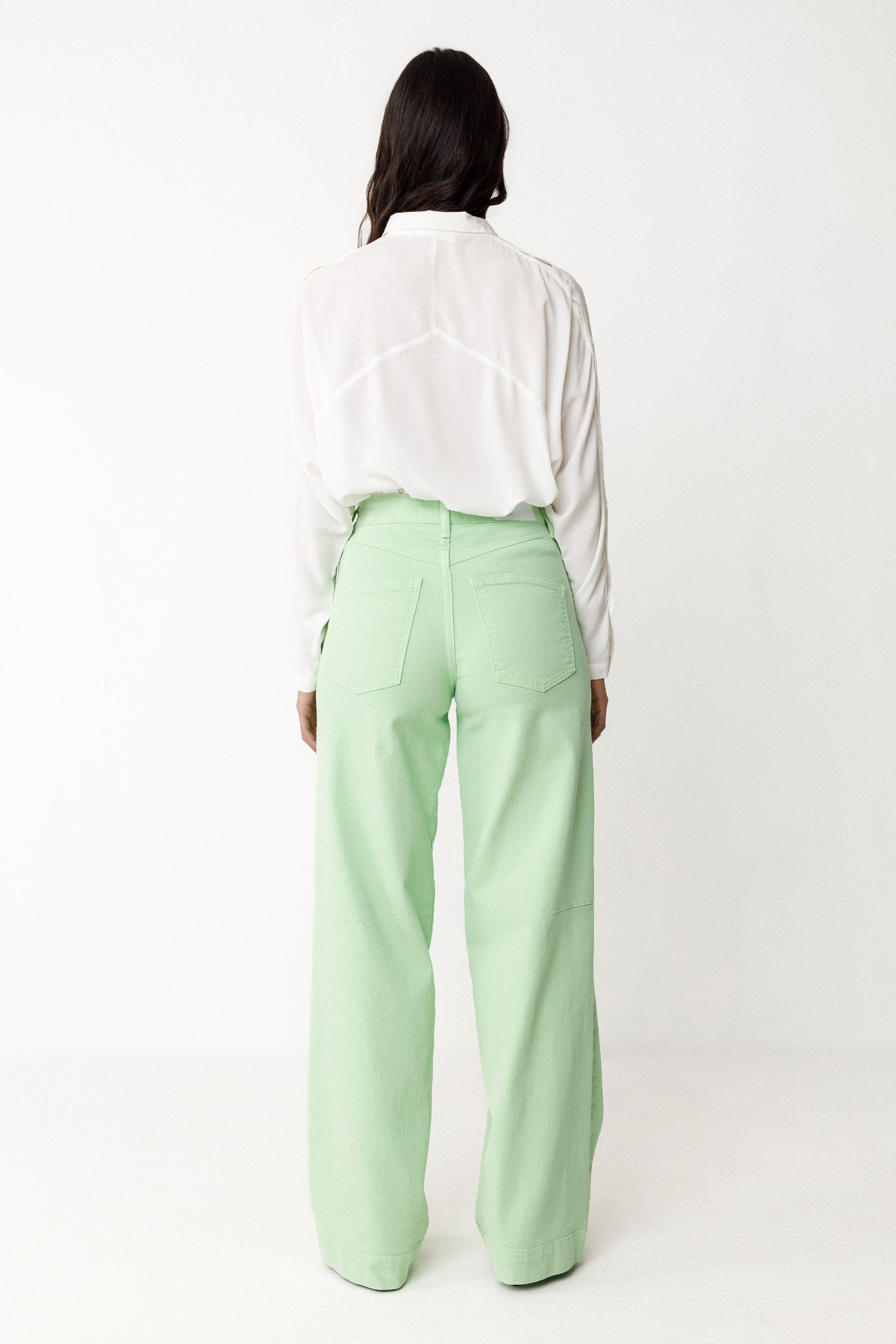 Wide-leg trousers with decorative darts on the legs. Front zip fly. Outseam: 108 cm (size 38).