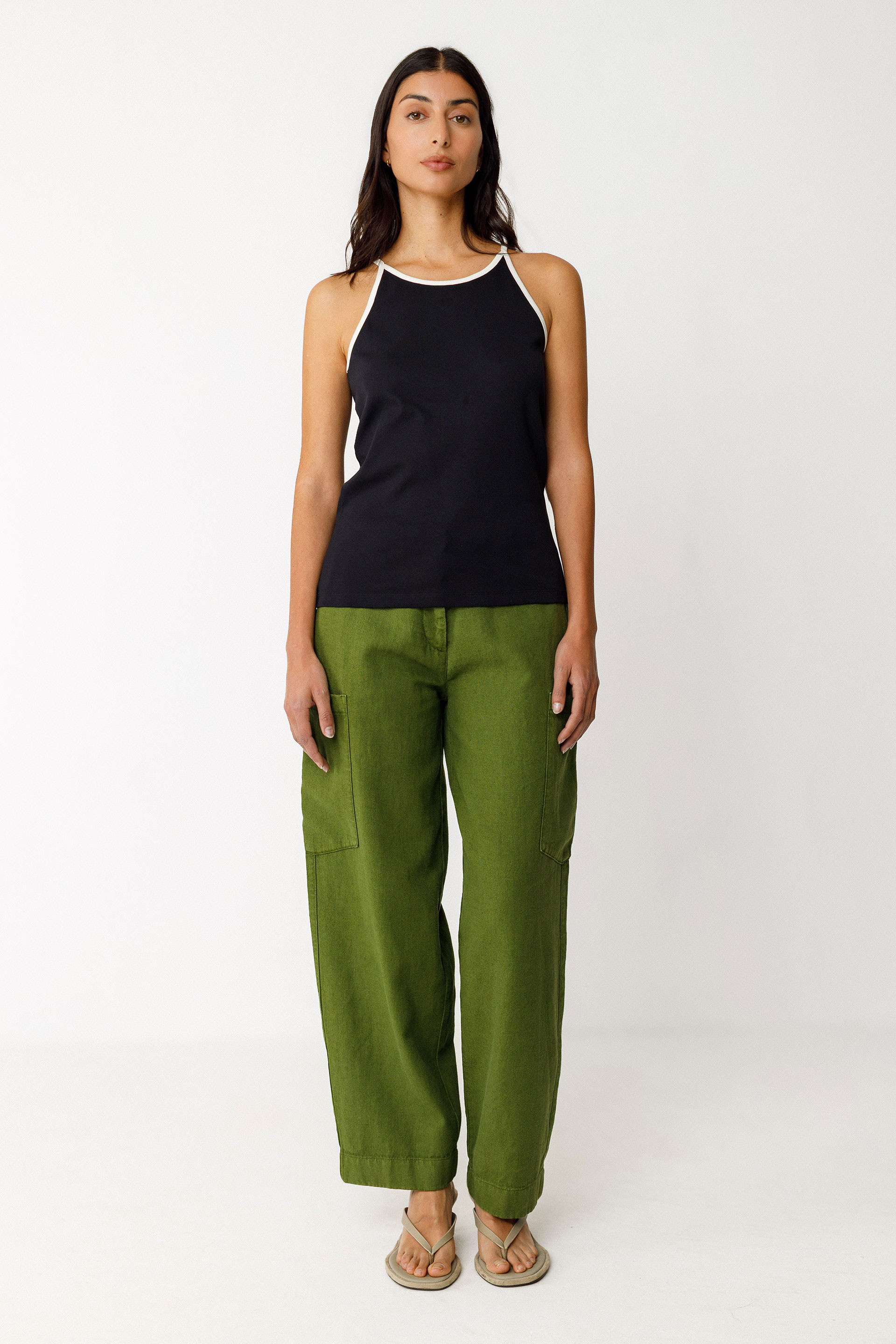 Tank top with thin straps, a fitted cut, and round neckline. Made from GOTS-certified organic cotton.