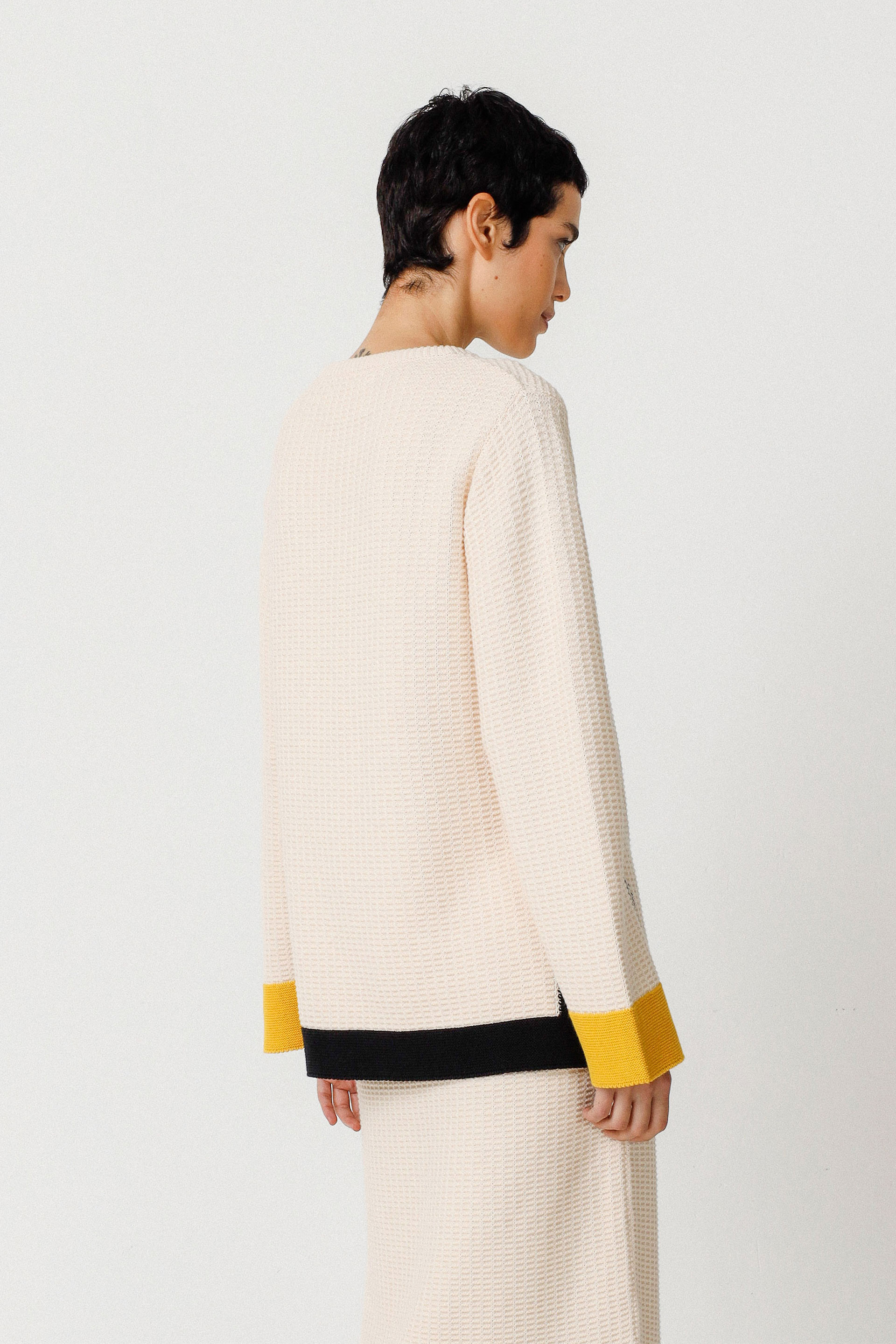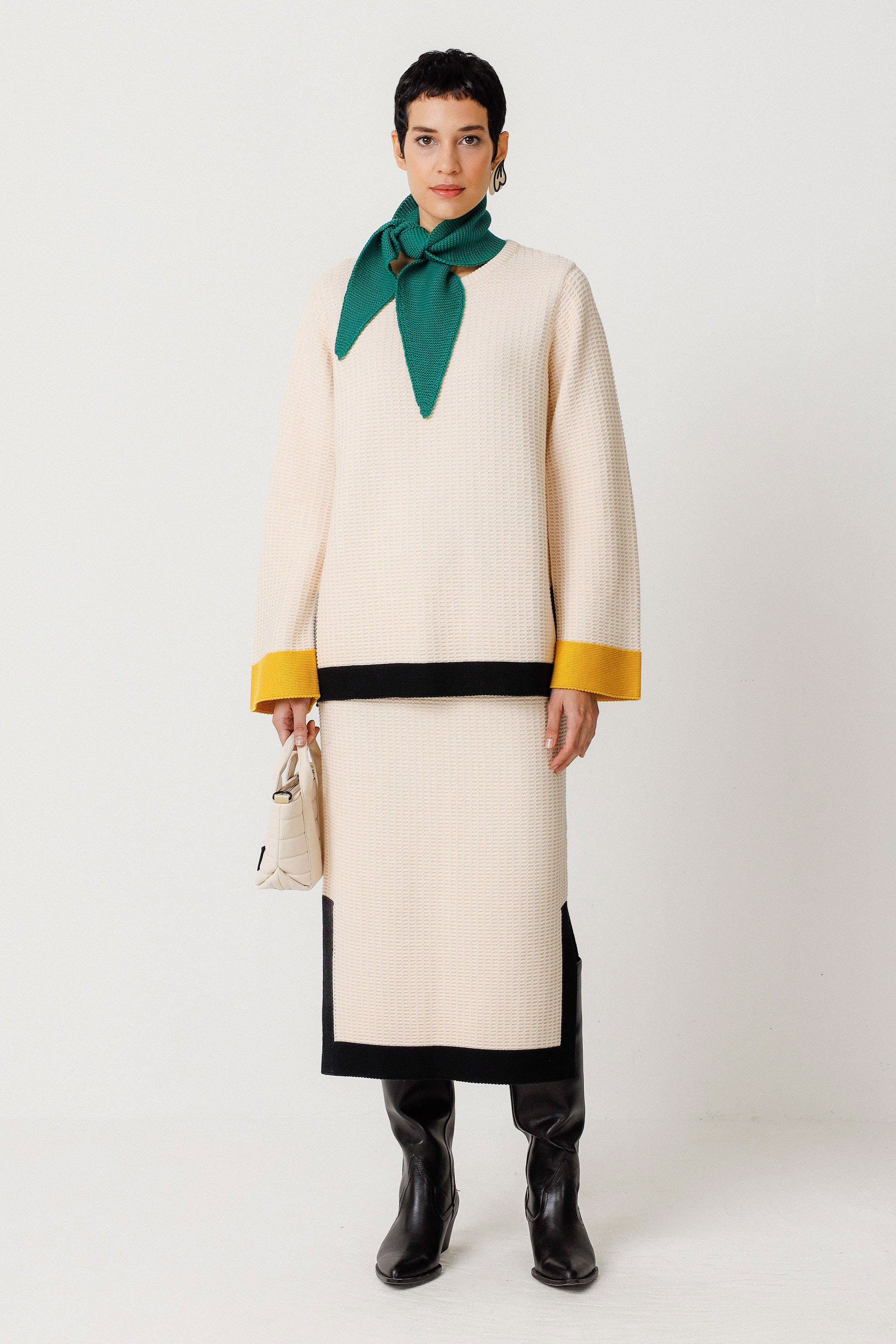 Warm A-line sweater with a regular fit and heavyweight construction, featuring a round neck and long sleeves. Flattering with an A-line silhouette. GOTS certified organic cotton.