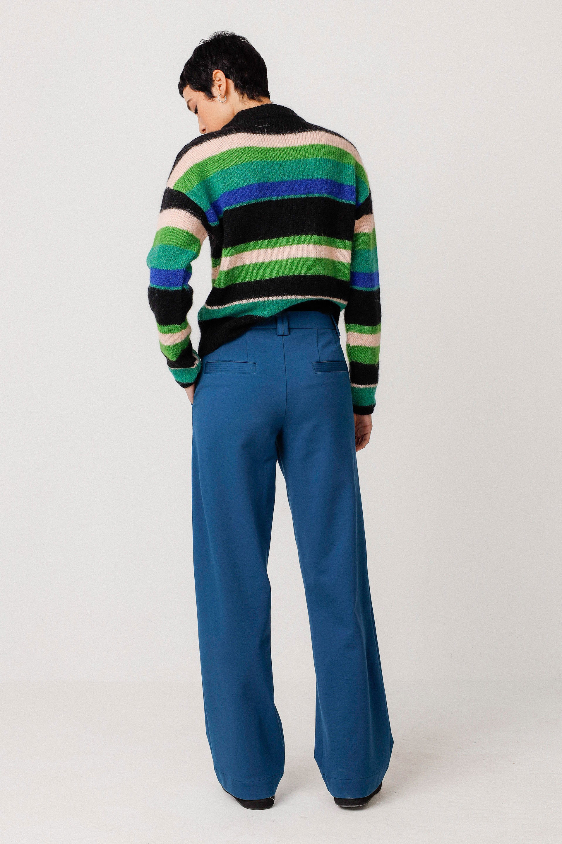 Premium knit sweater with a short round neck and long sleeves, crafted from recycled materials with a fuzzy finish, it is made in Portugal. Embraces a luxurious feel with an eco-friendly design.