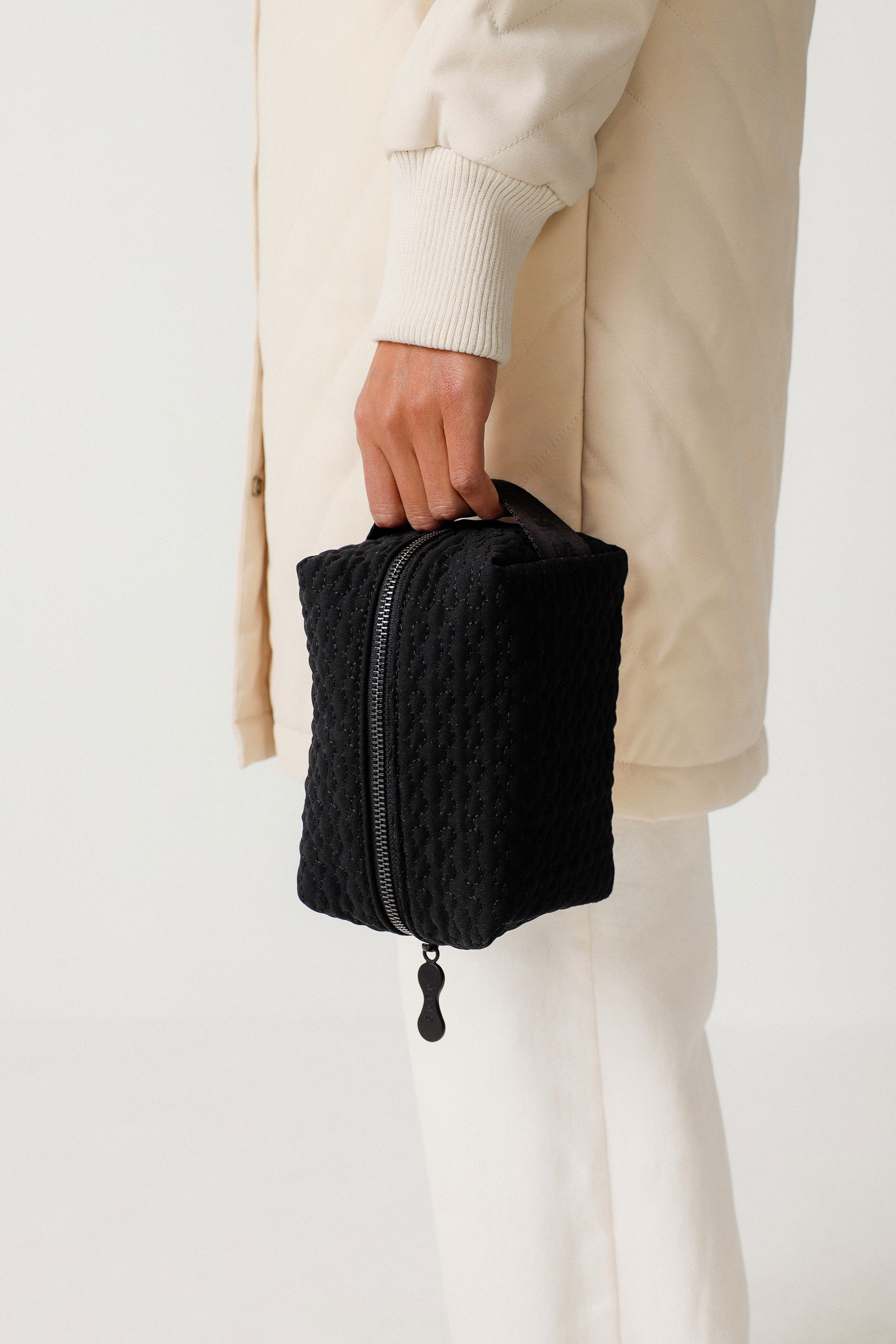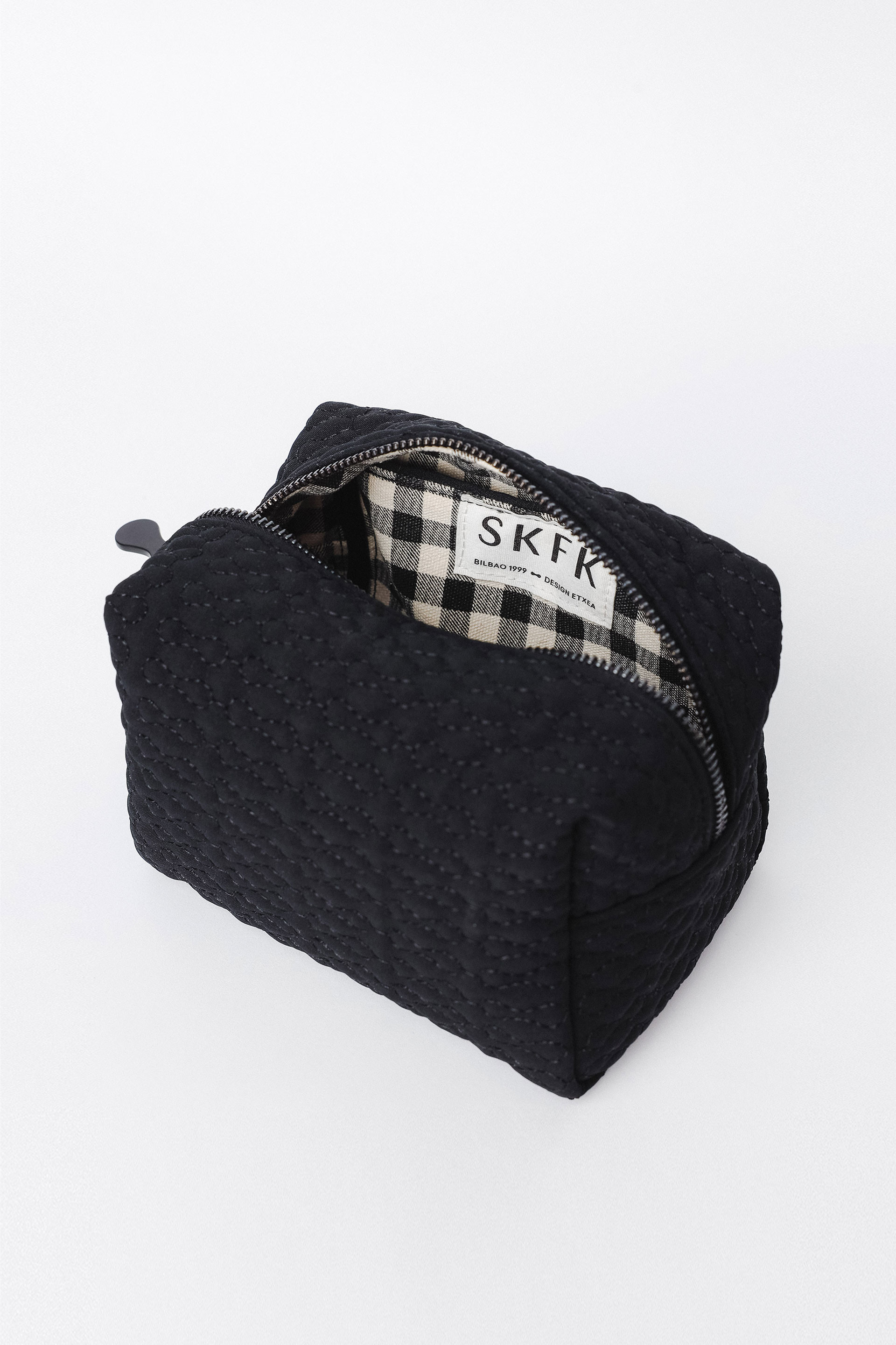 Cosmetic bag with an inner pocket, printed lining and zip closure. Keeps your essentials organised in style.