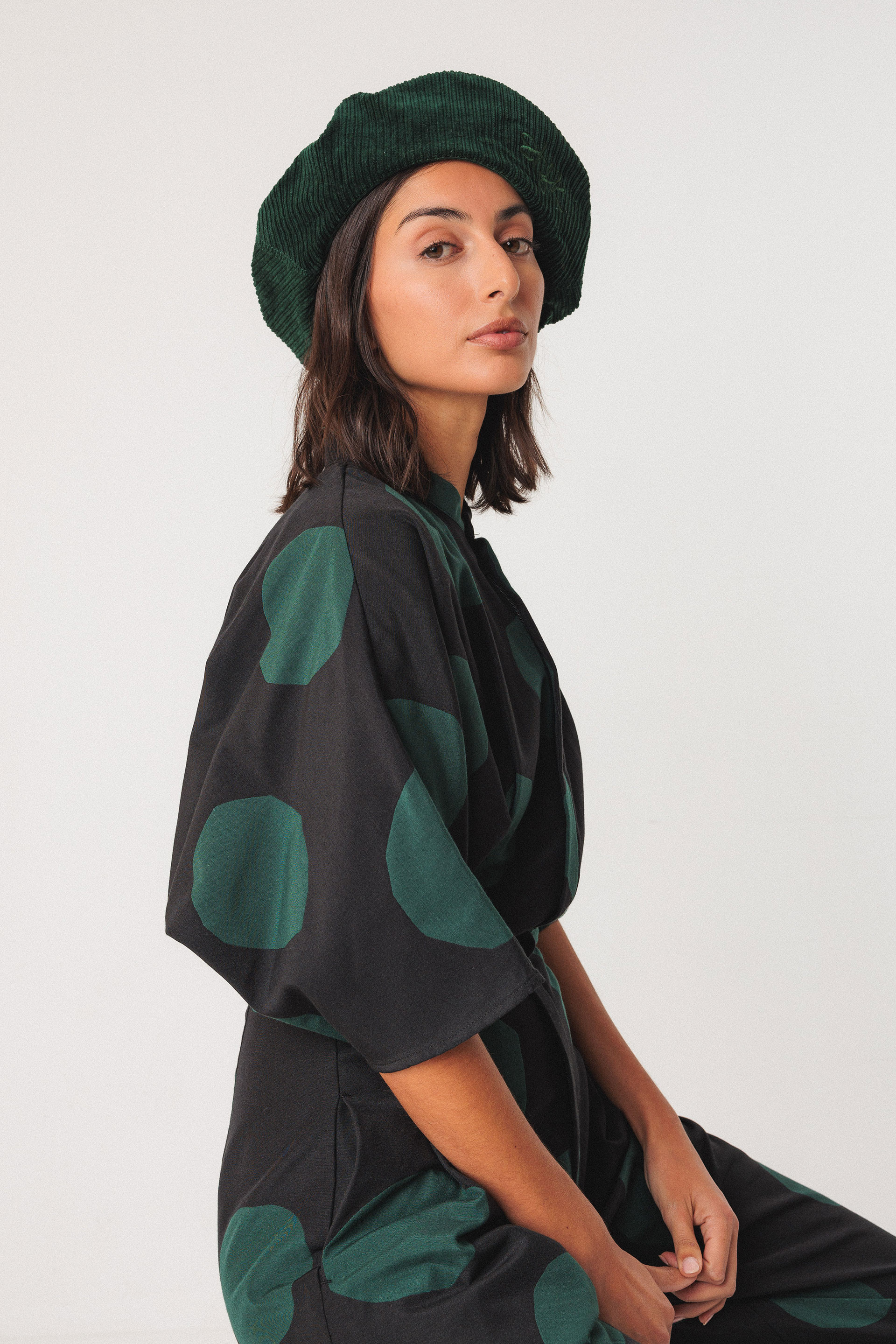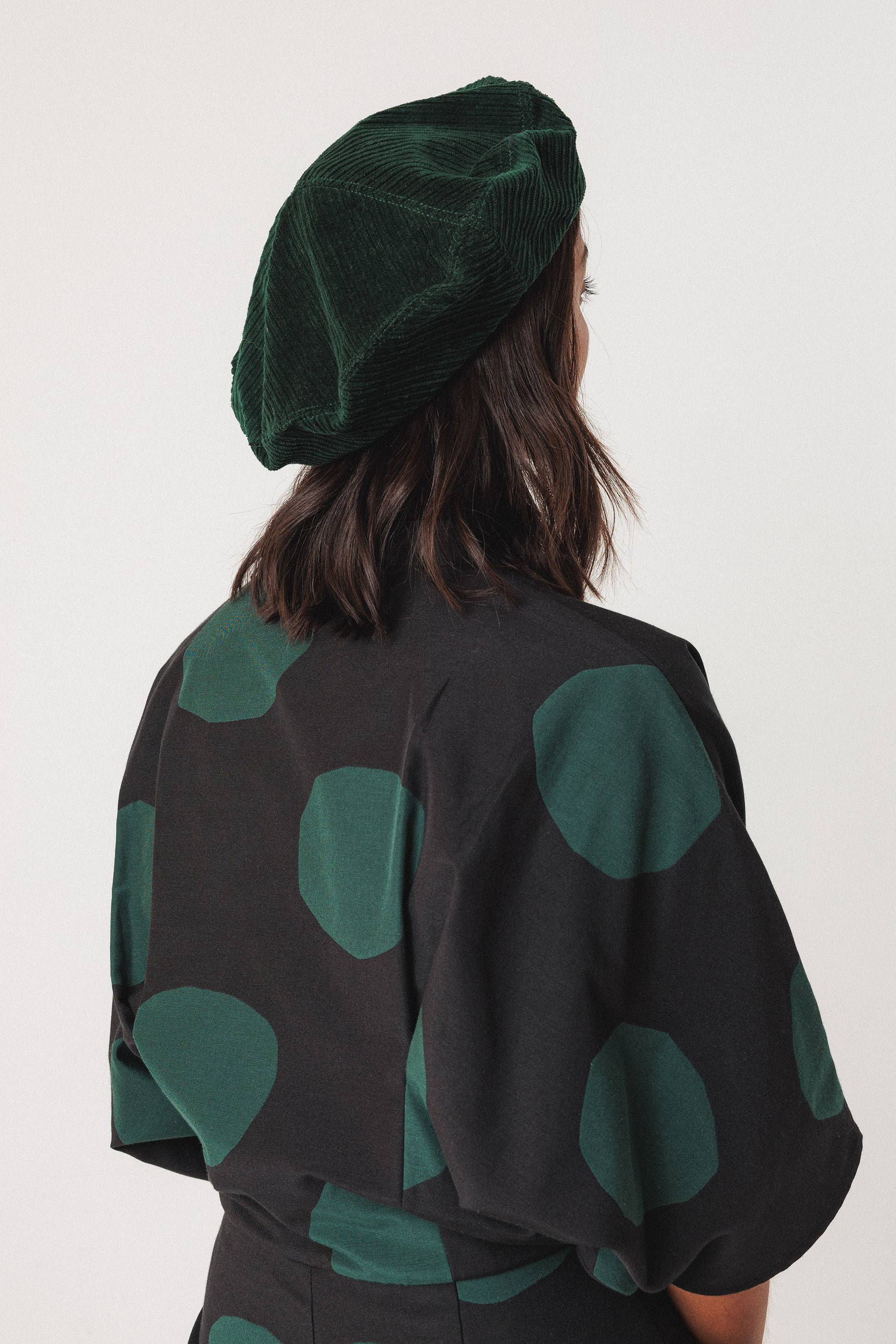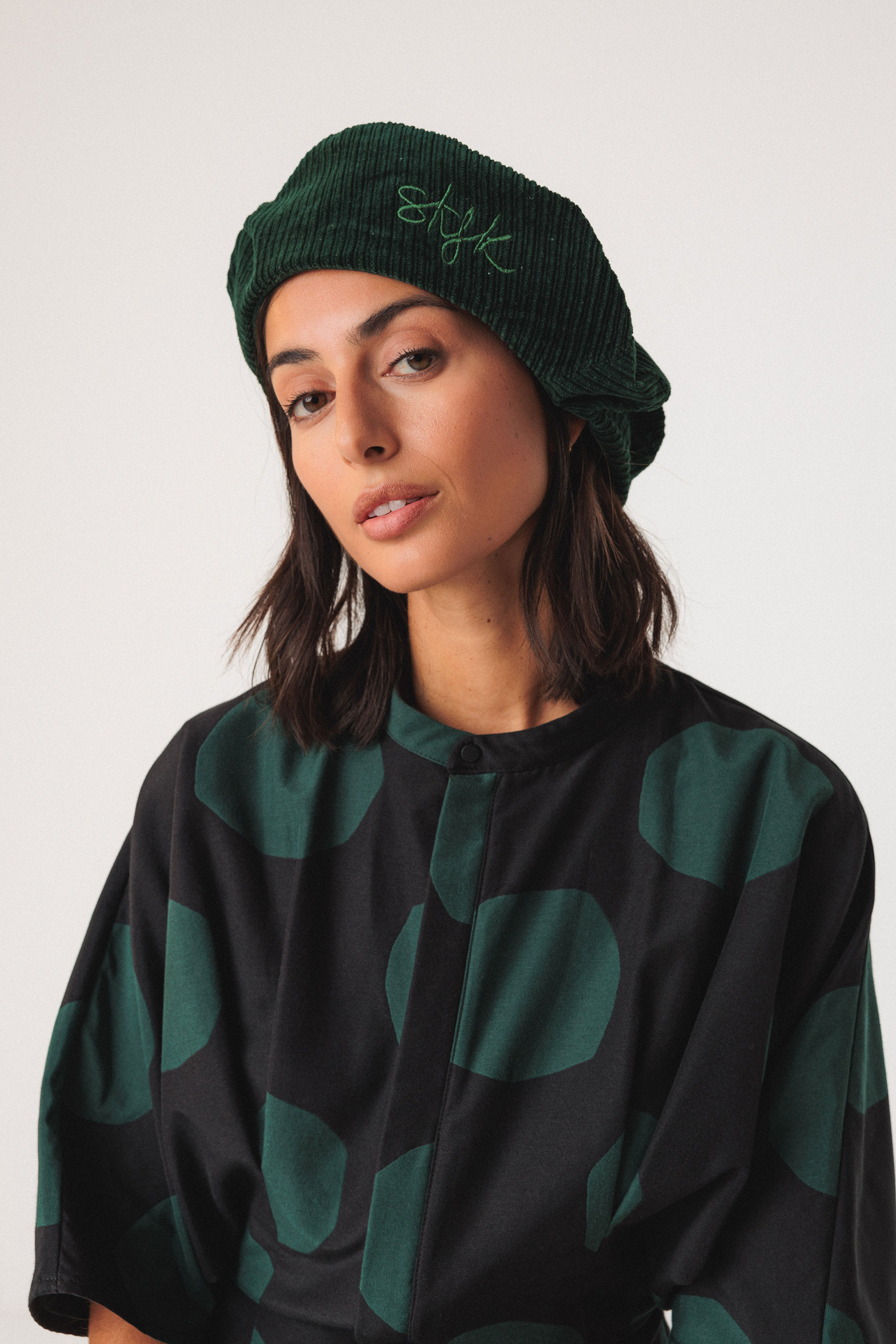 Solid-coloured beret in GOTS certified cotton with embroidered logo.
