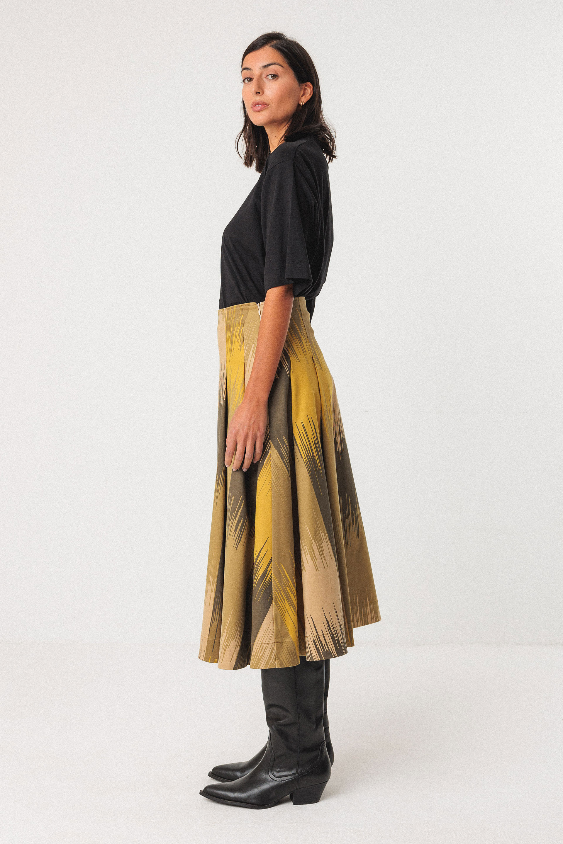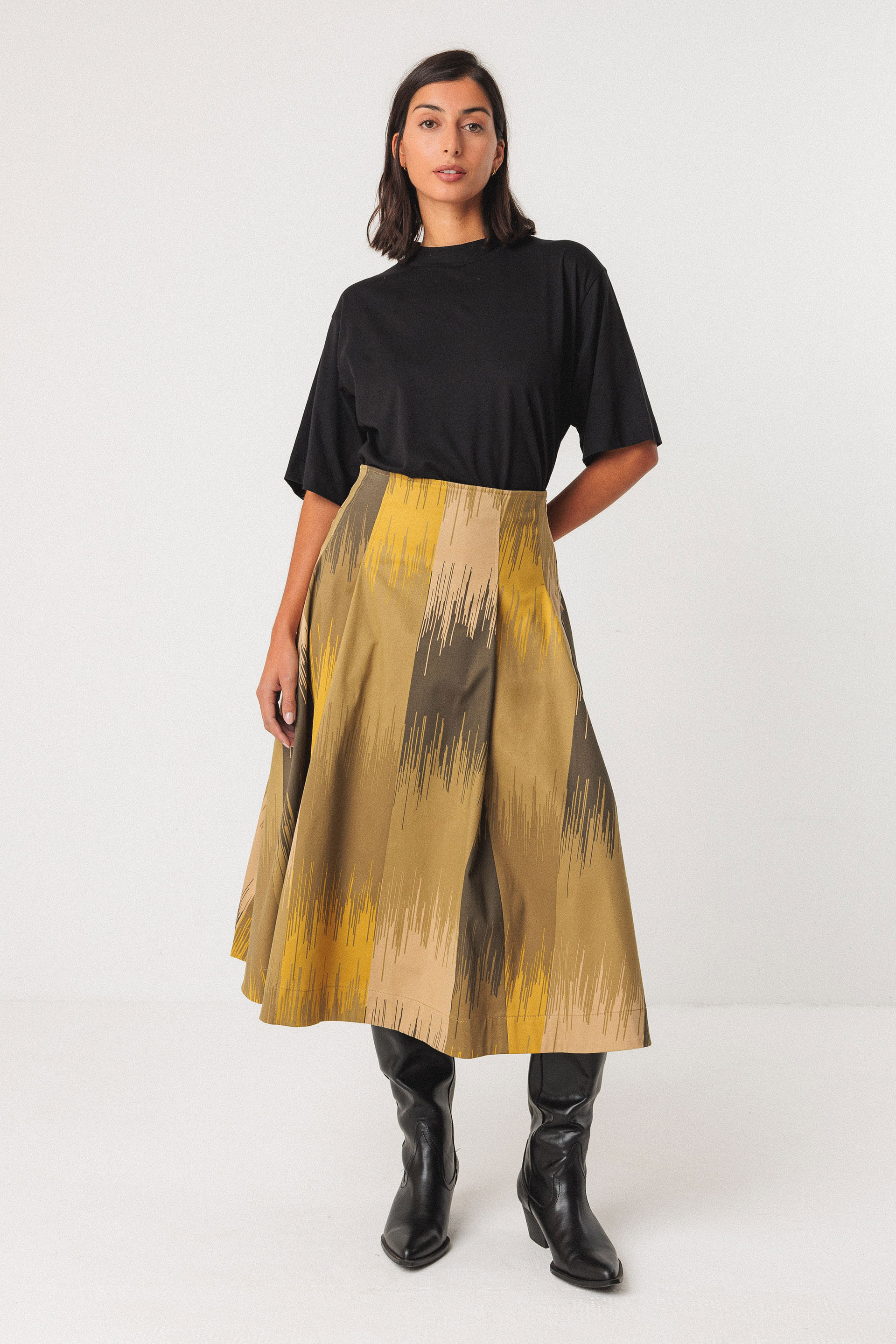 A-line skirt that falls below the knee, with side pockets and side zip closure. Made from GOTS certified organic cotton. Large size, it is recommended to choose one size smaller.