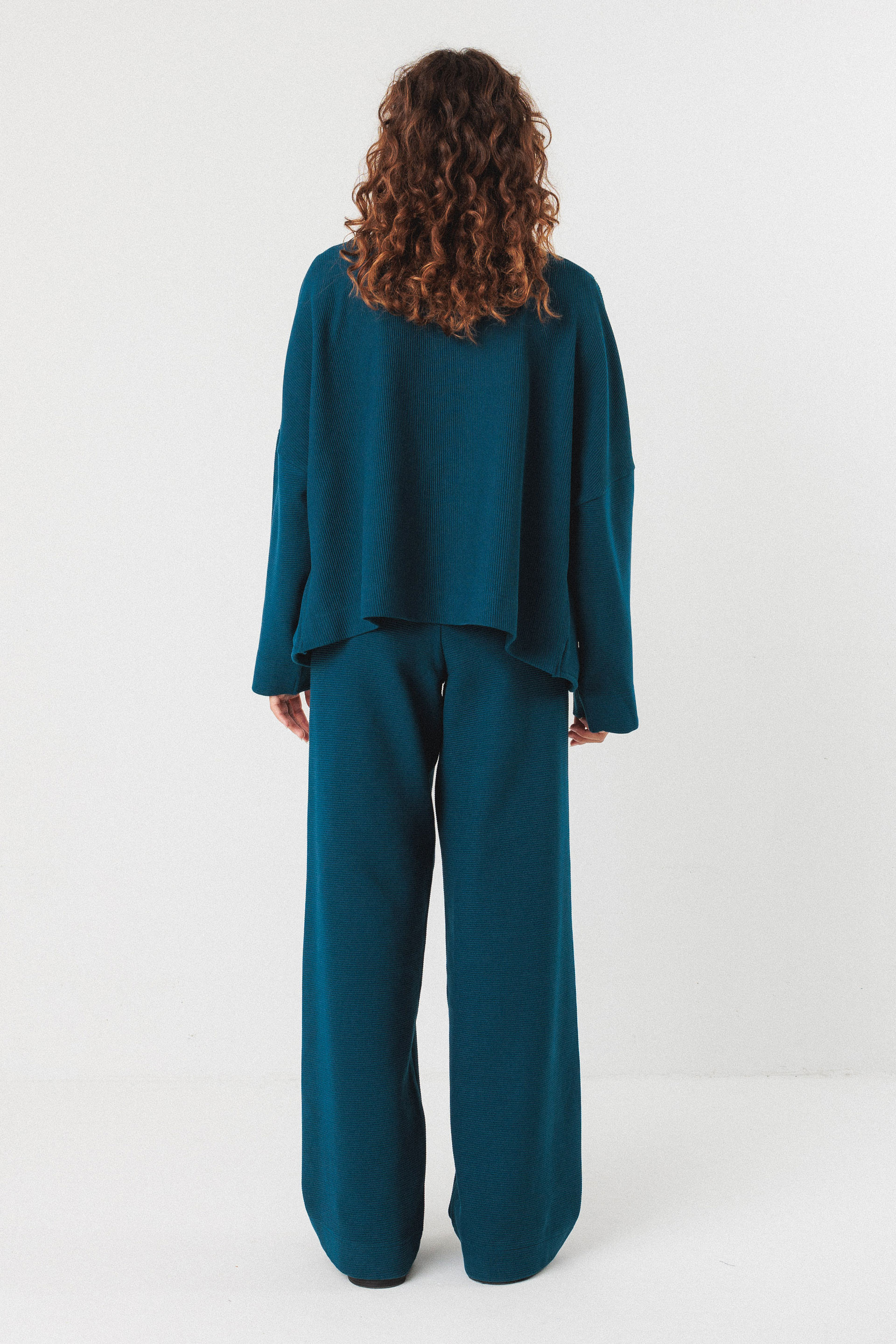 Loose-fitting GOTS certified organic cotton cardigan with kimono sleeves and front pockets.