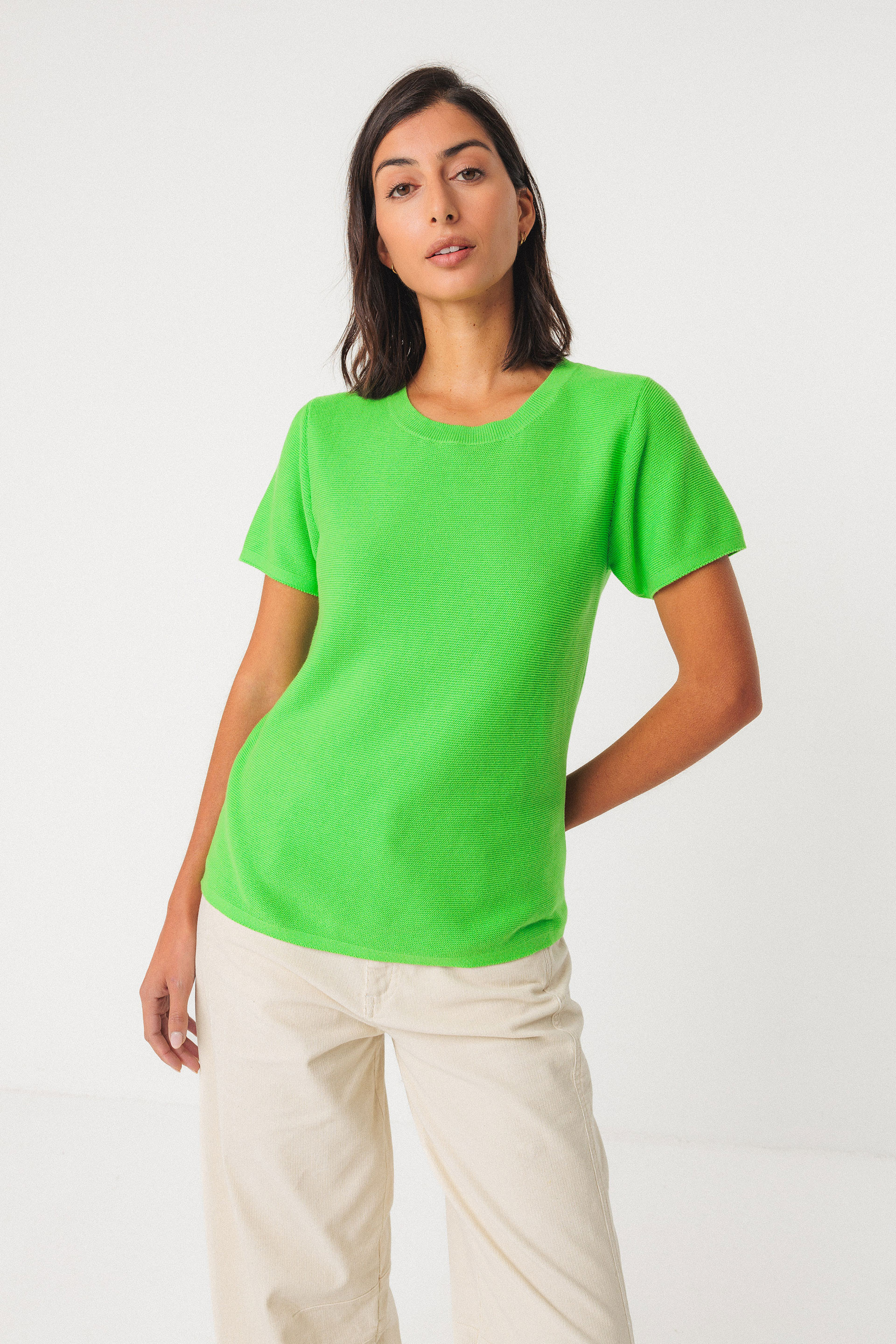 Lightweight knit top with a straight cut, round neck and short sleeves made from GOTS certified organic cotton.