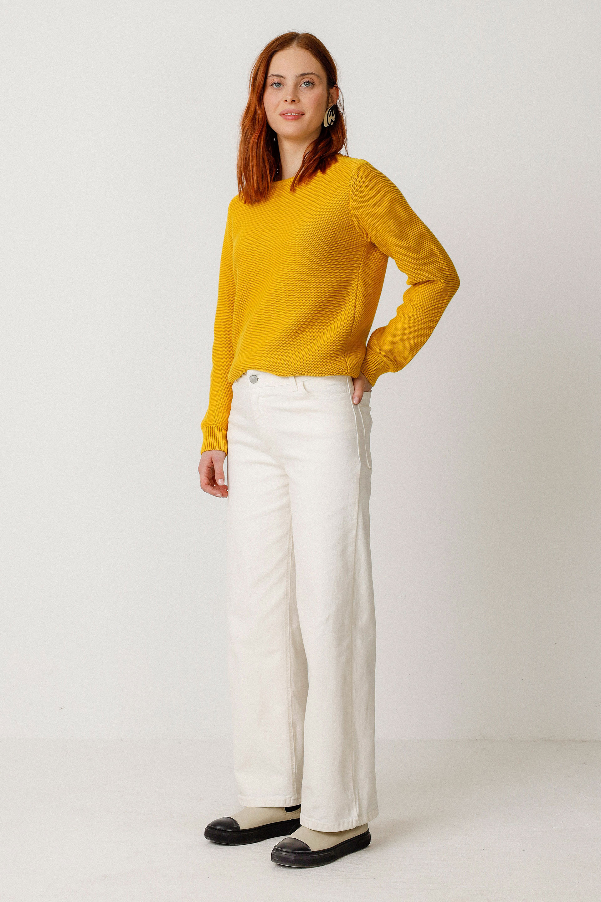 Pantalón recto de pata ancha con bolsillos delanteros y traseros y cierre delantero de cremallera. Fabricado en España. Estilo atemporal con prácticos detalles.