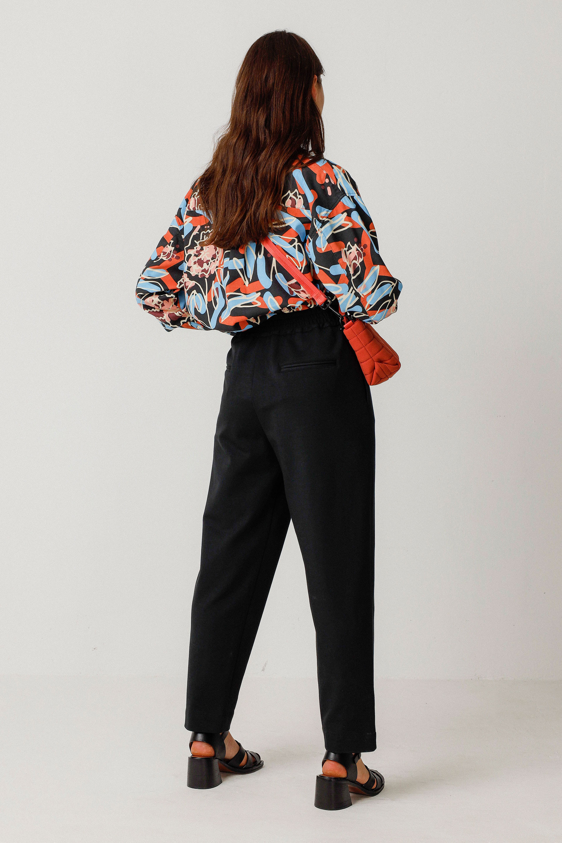 Pantalón carrot hasta el tobillo con cintura estándar, parte posterior de la cintura elástica y falsos bolsillos ribeteados traseros, que combina la comodidad con un look moderno.