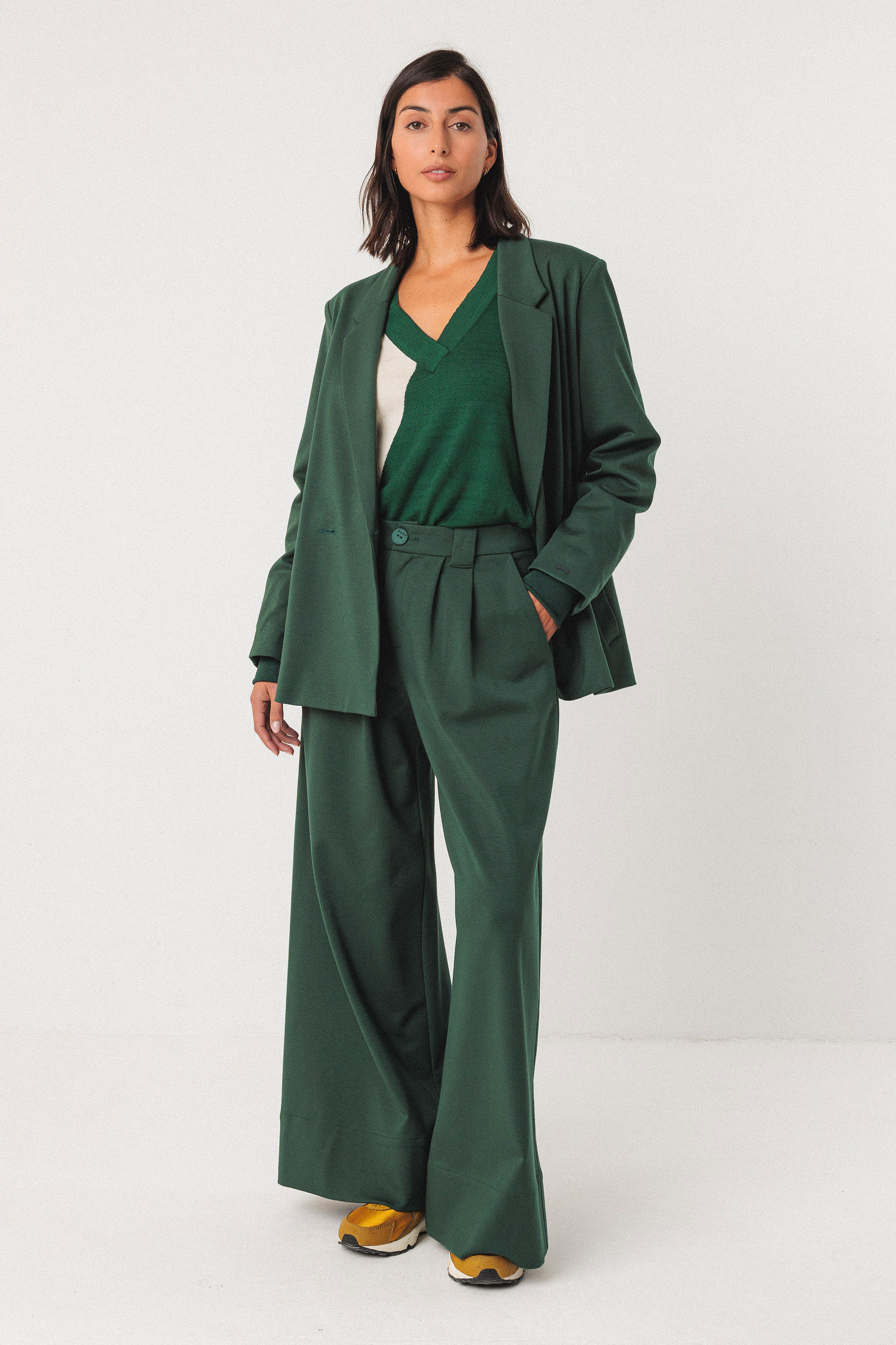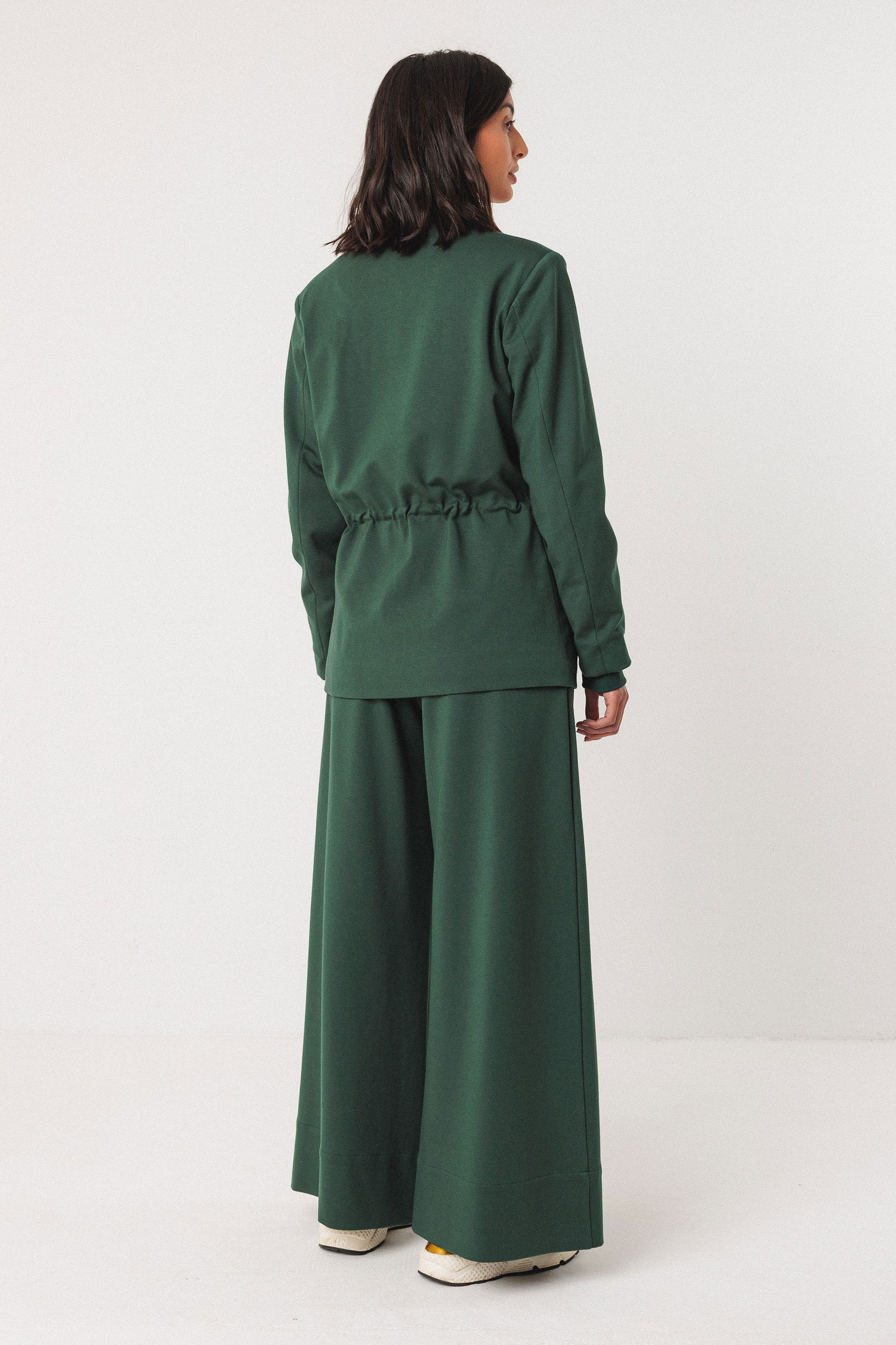 Blazer de corte recto con cintura ajustable gracias a un cordón elástico interno. Cierre delantero abotonado y forro integral.