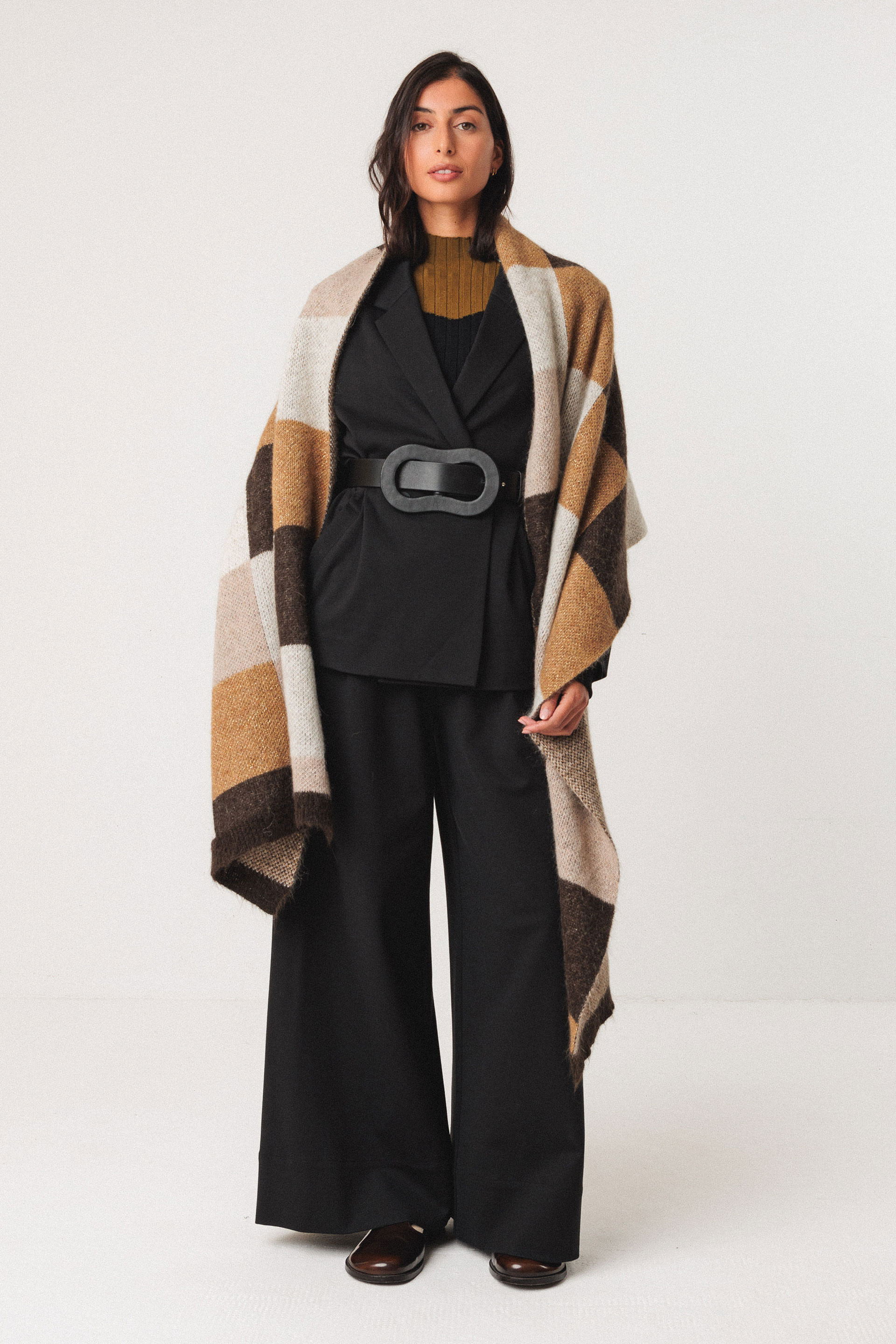 Bufanda rectangular de punto premium hecha con alpaca reciclada mezclada, de tacto mullido y suave. Hecha en Portugal. Mide 180 x 55 cm.