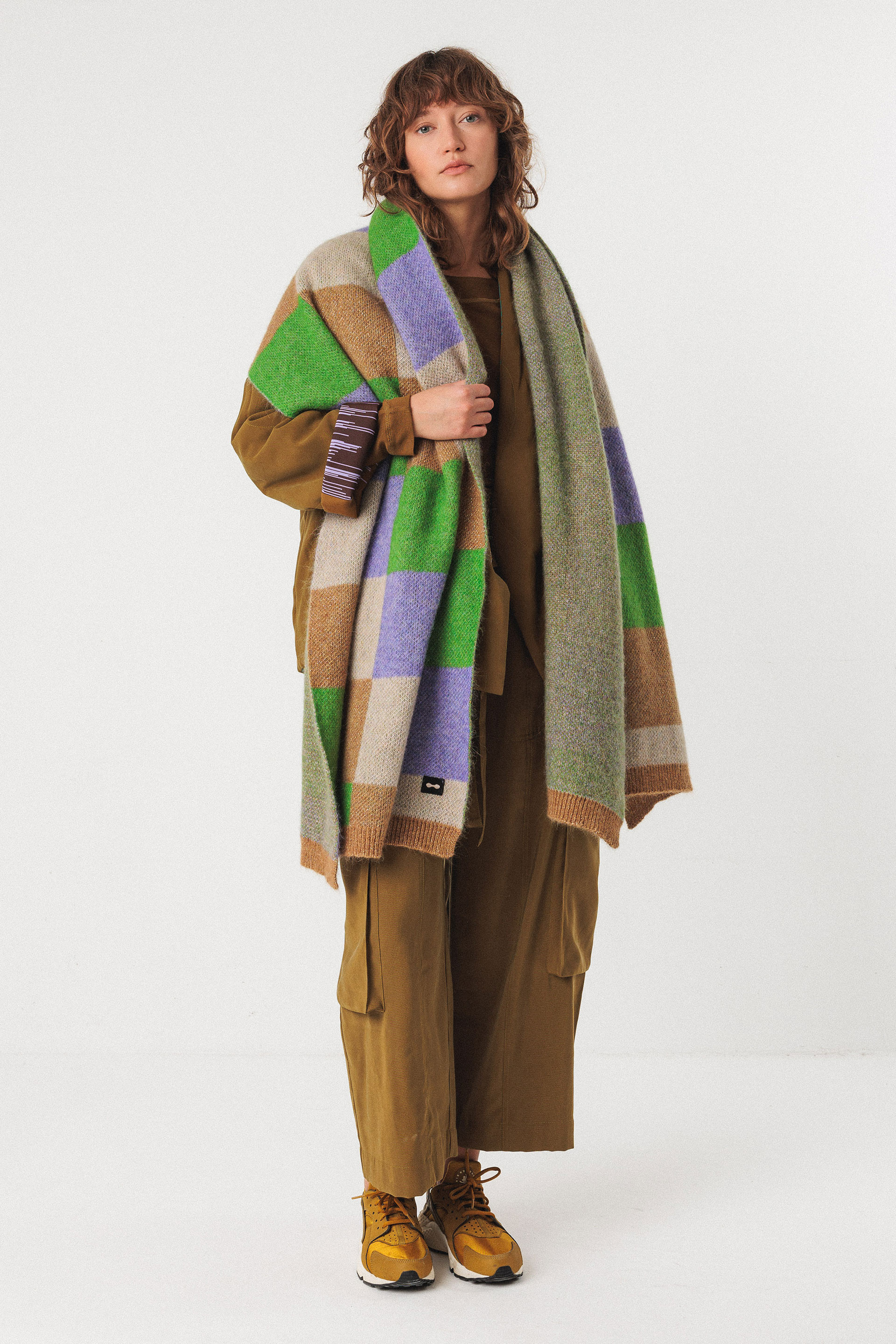 Bufanda rectangular de punto premium hecha con alpaca reciclada mezclada, de tacto mullido y suave. Hecha en Portugal. Mide 180 x 55 cm.