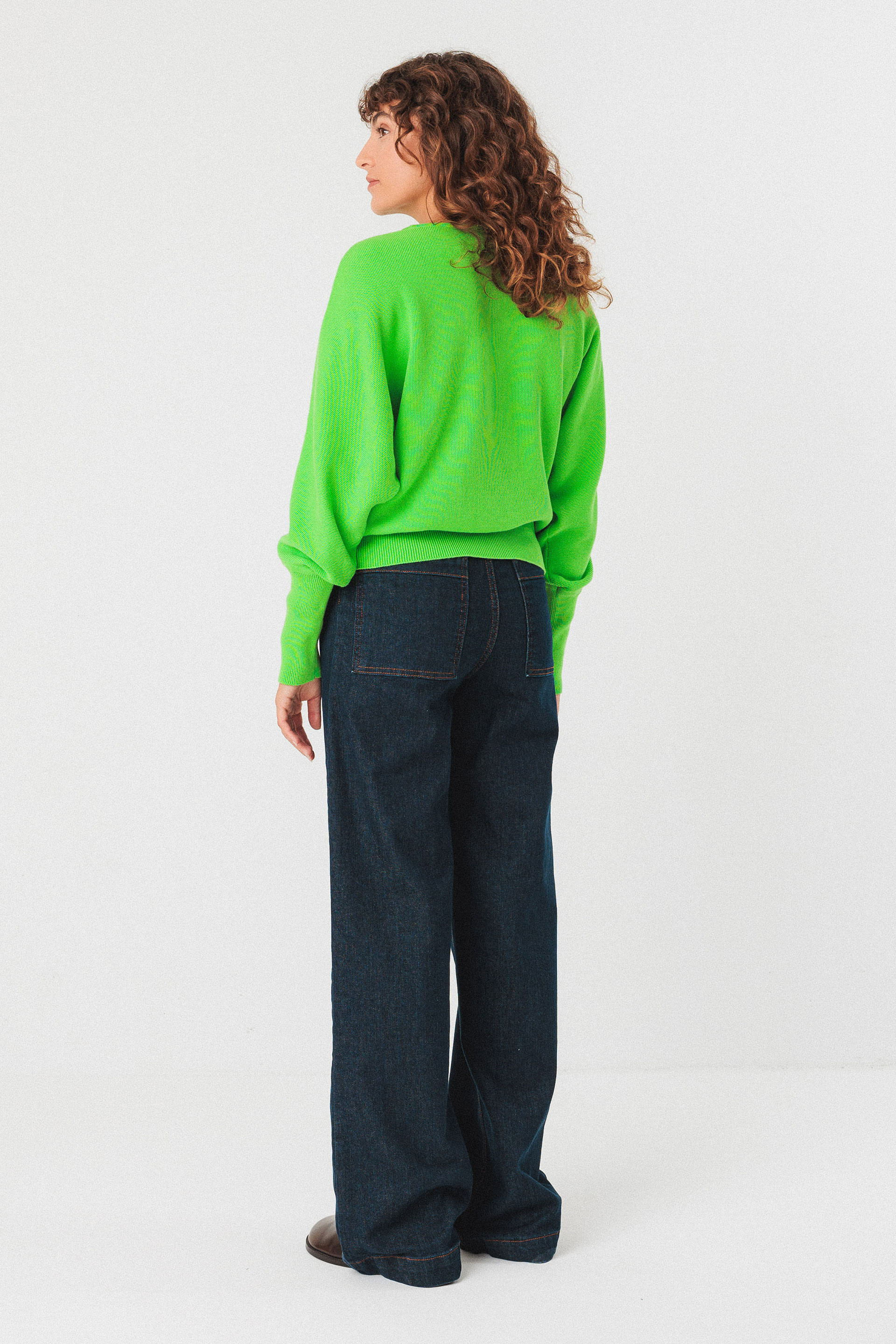 Suéter de punto bobo semigrueso con cuello redondo y mangas murciélago.