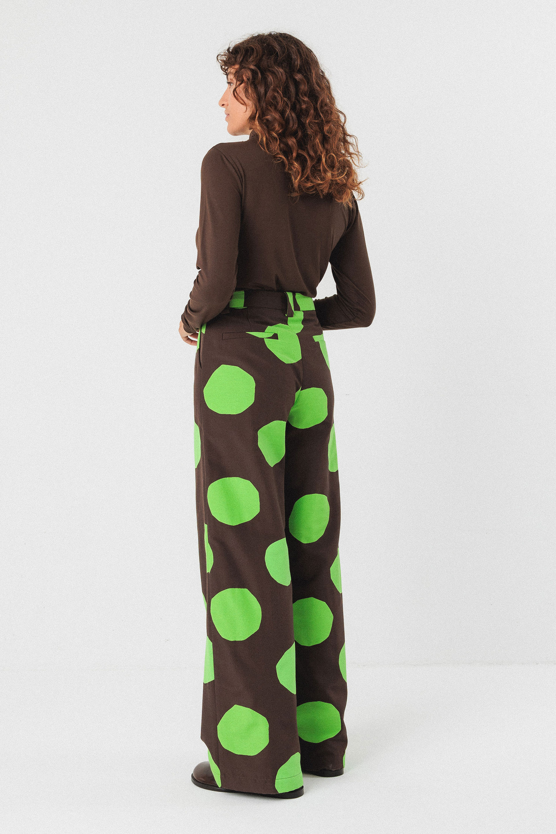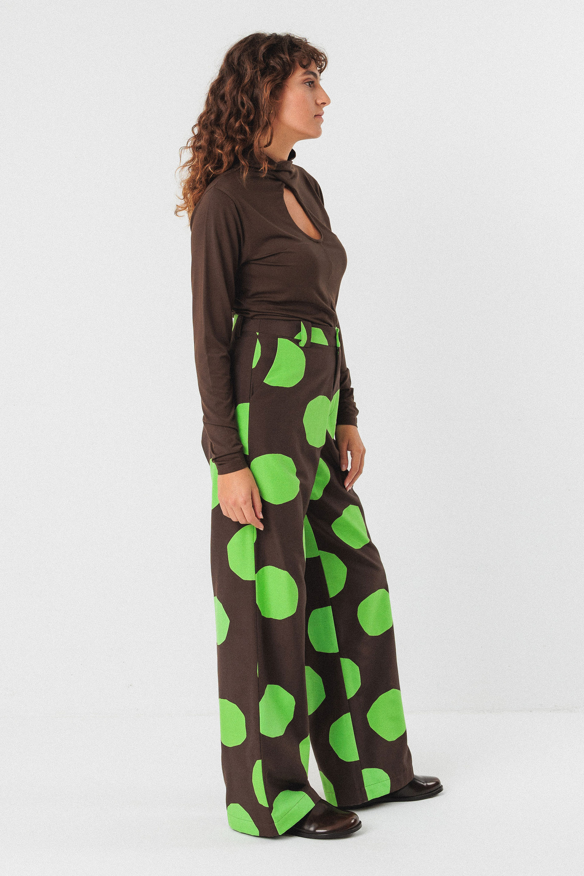 Pantalón recto de tejido con dibujo jacquard. Tiene una bragueta con cremallera delantera, bolsillos al bies y falsos bolsillos ribeteados en la parte de atrás.