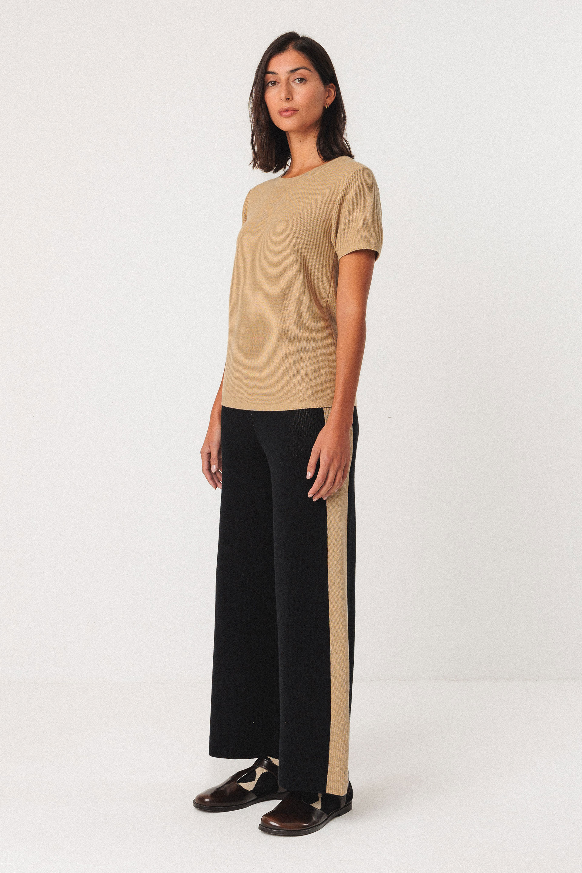 Camiseta fina de punto de algodón orgánico con certificado GOTS, de corte recto, manga corta y cuello redondo.