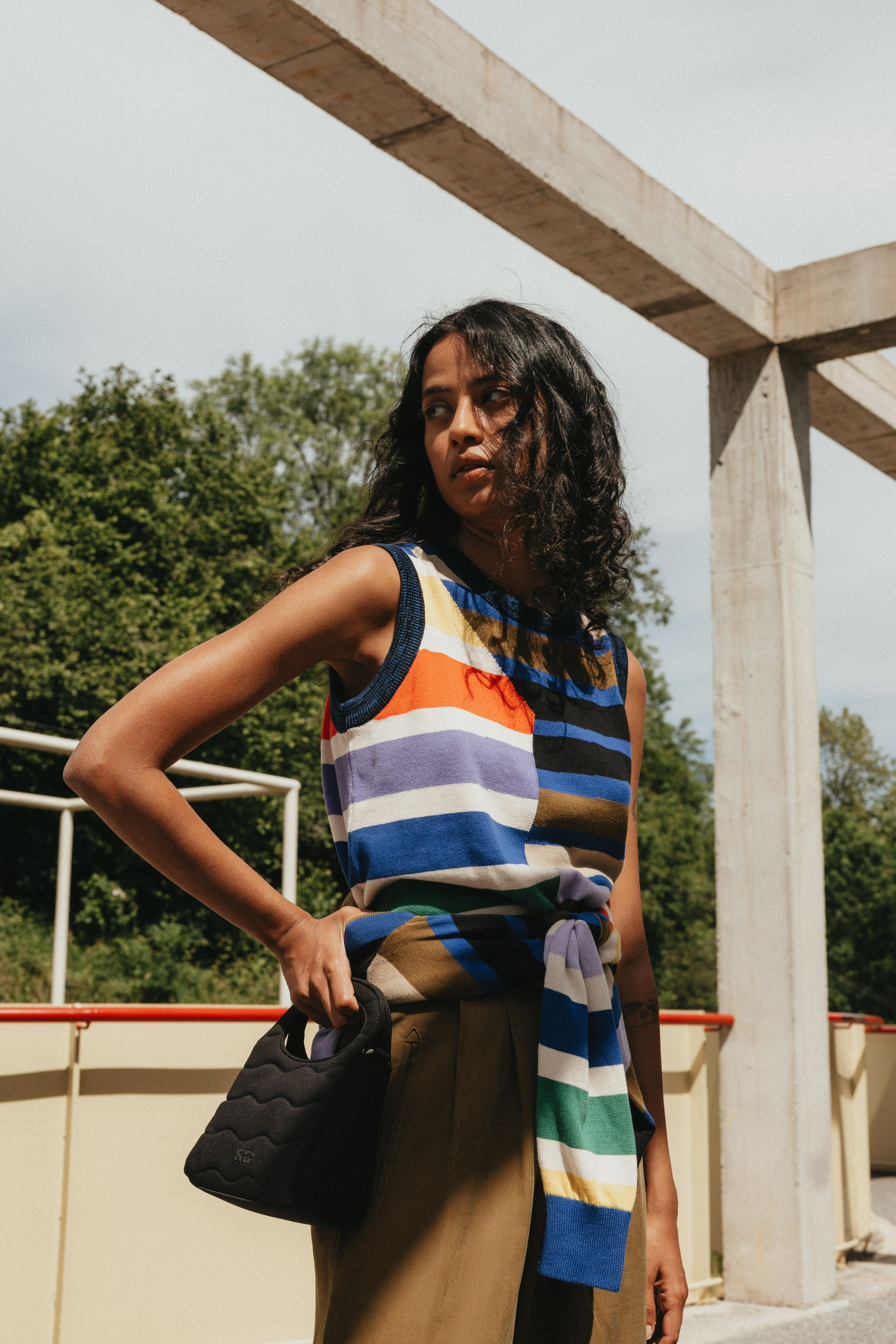 Top de punto jacquard sin mangas con un estampado diseñado en colaboración con el artista Grems. Cuello redondo y corte ceñido.