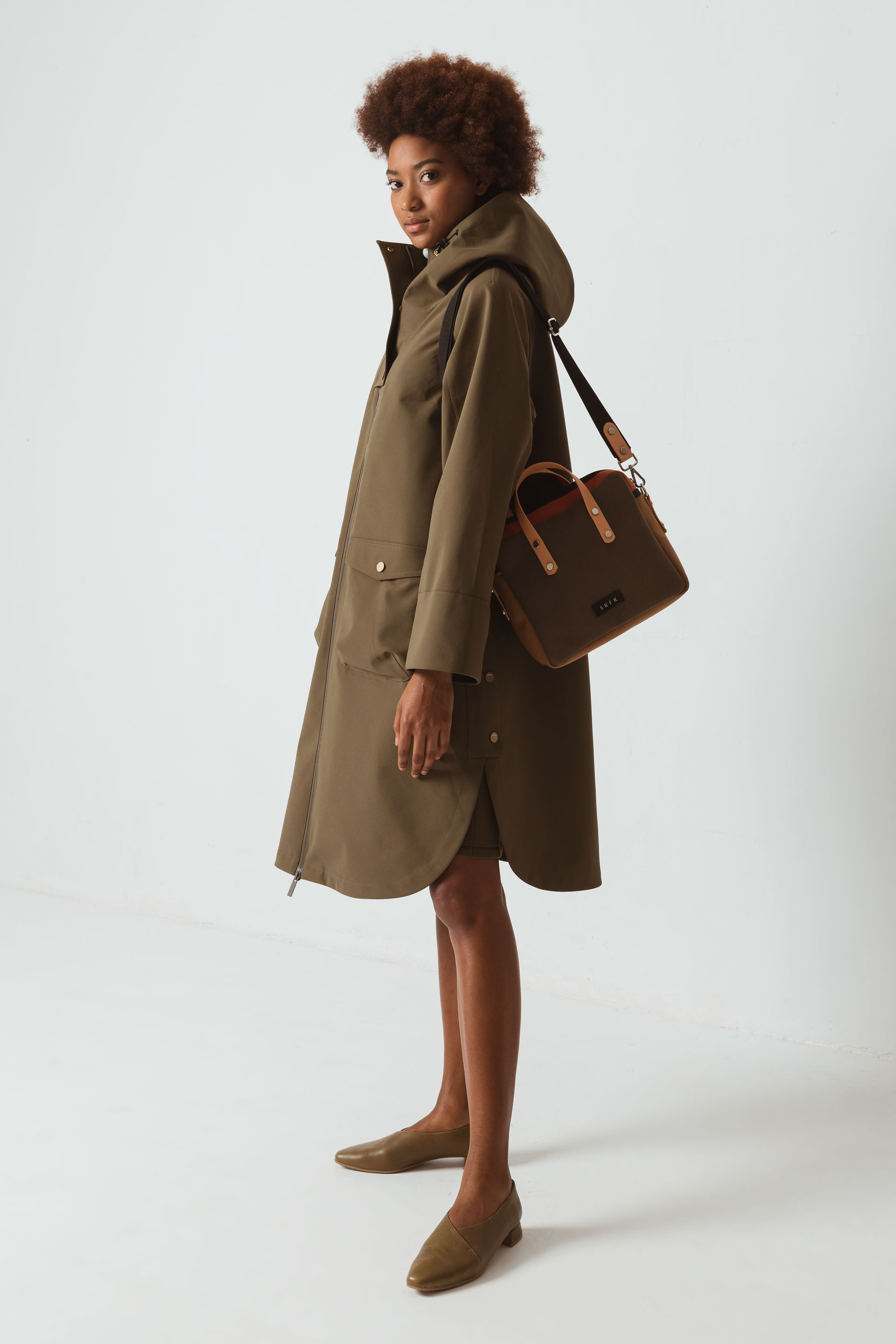Funcional impermeable hecho con poliéster reciclado impermeable de corte amplio y protector. Tiene una capucha ajustable, bolsillos de solapa grandes, un cierre delantero de cremallera y unas aberturas con botones a presión en los laterales para mayor libertad de movimientos al ir en bici. Impermeabilidad 5000 mm, transpirabilidad 3000 g / m2 / 24 h. Tratamiento hidrófugo sin PFC. Verde oliva oscuro. En lugar de tirarlas, las botellas de plástico se pueden reutilizar para fabricar prendas nuevas. Estos modelos, fluidos y resistentes, permiten minimizar los recursos utilizados en su producción.