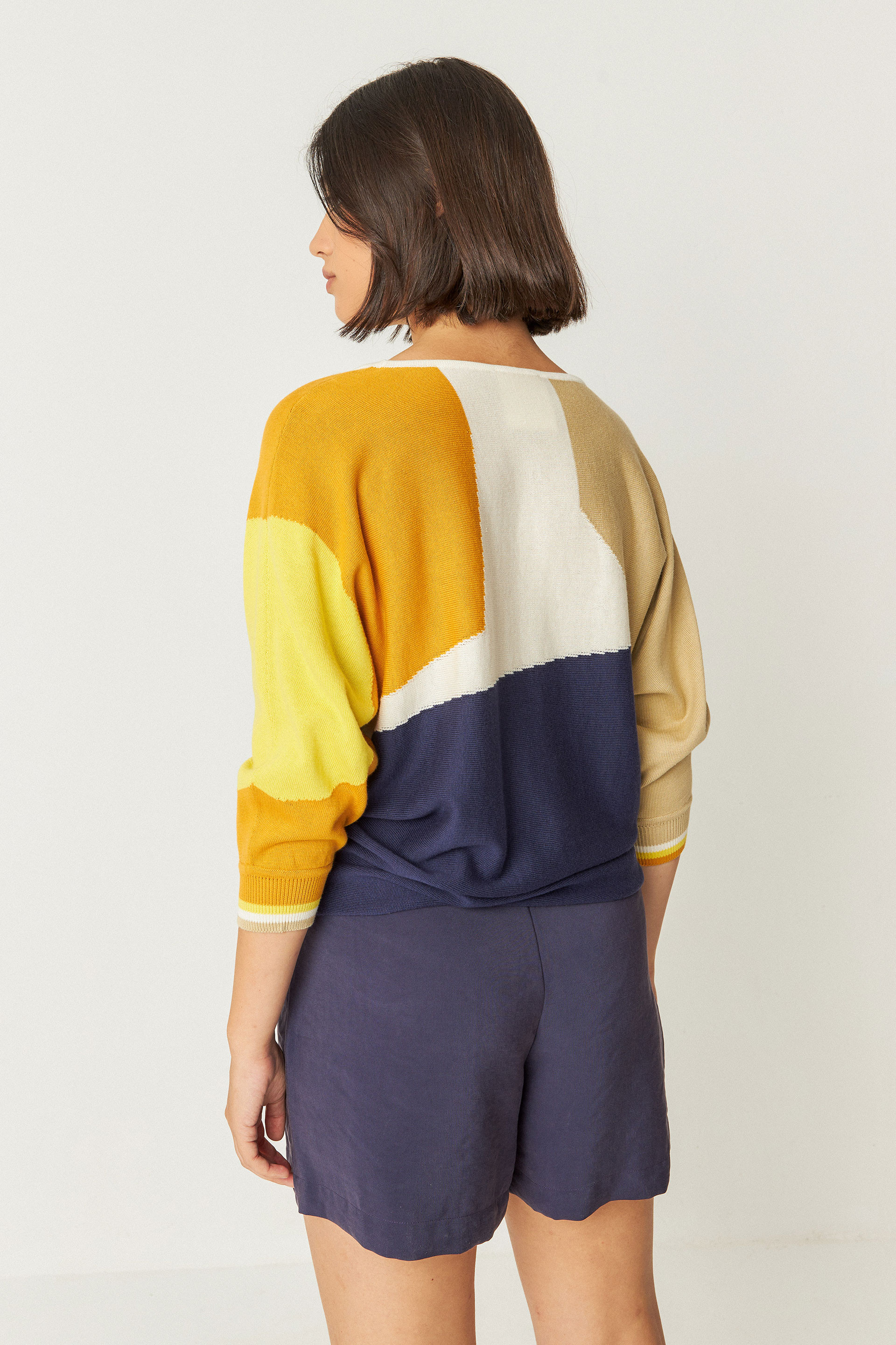 Jersey de manga murciélago de algodón ecológico. Cuello redondo y remates de canalé en los bajos de las mangas.