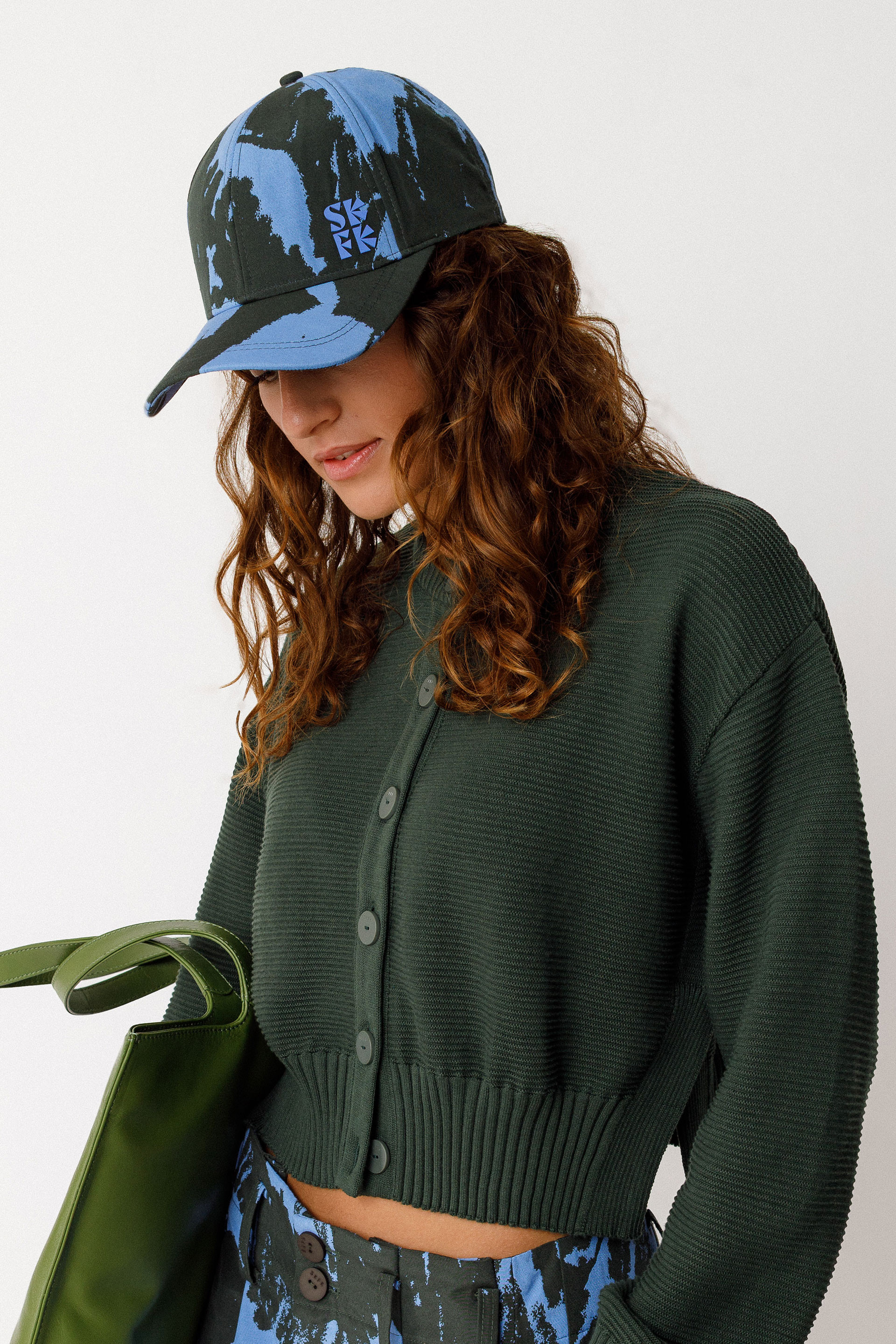 Gorra estampada de algodón orgánico y poliéster reciclado adornada con un logotipo de silicona.
