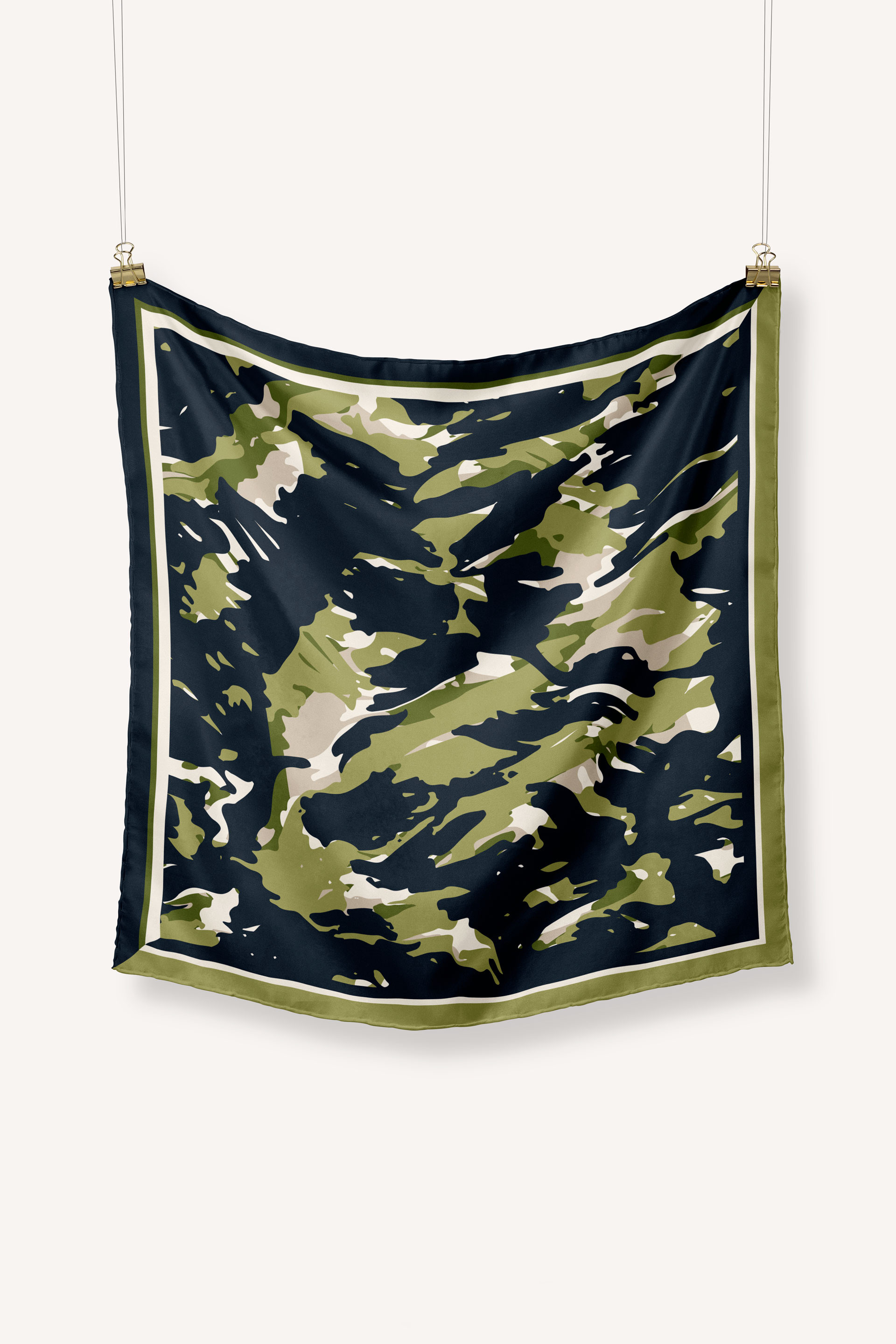 Pañuelo estampado de algodón orgánico con certificado GOTS. Mide 116 x 116 cm.