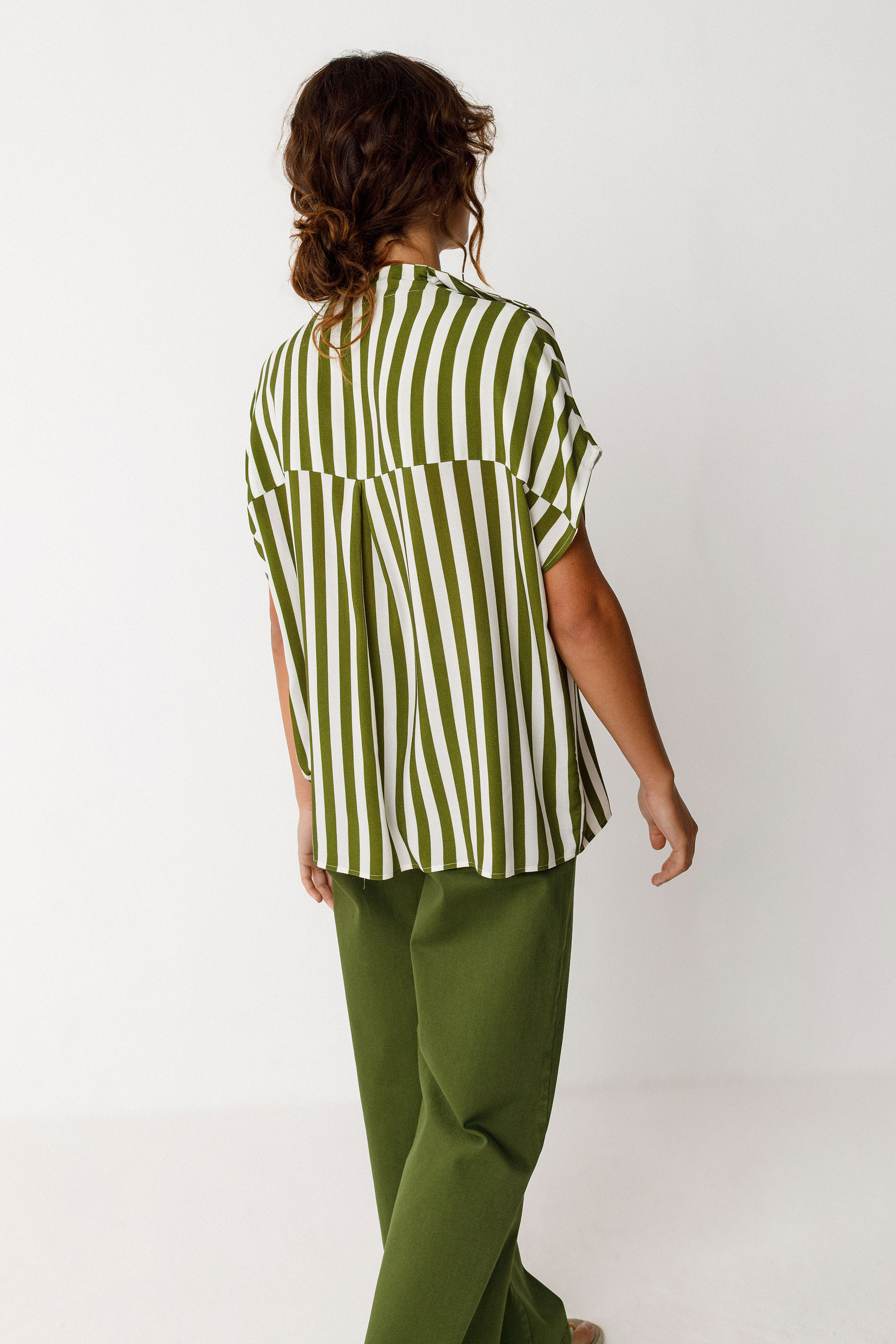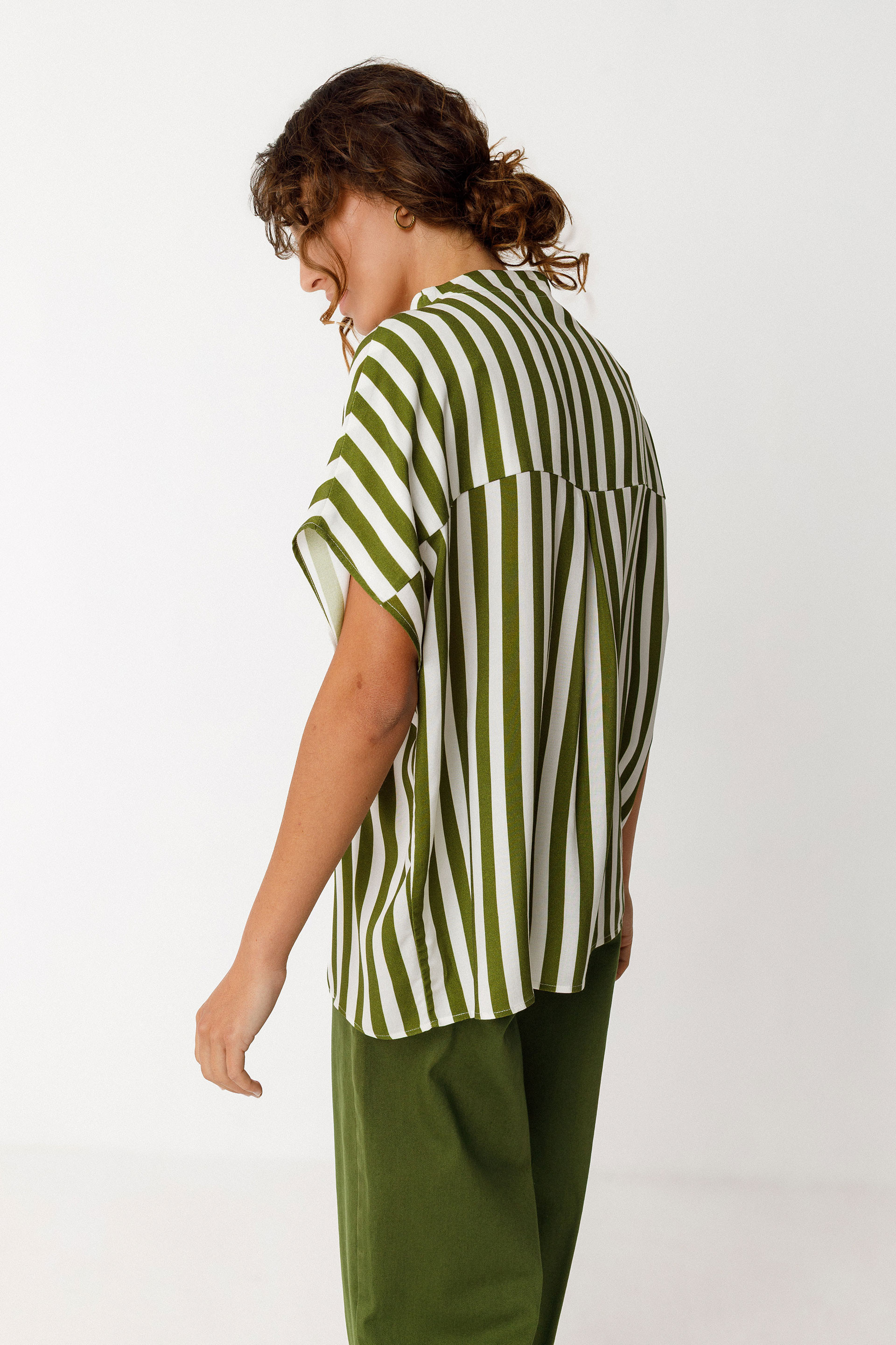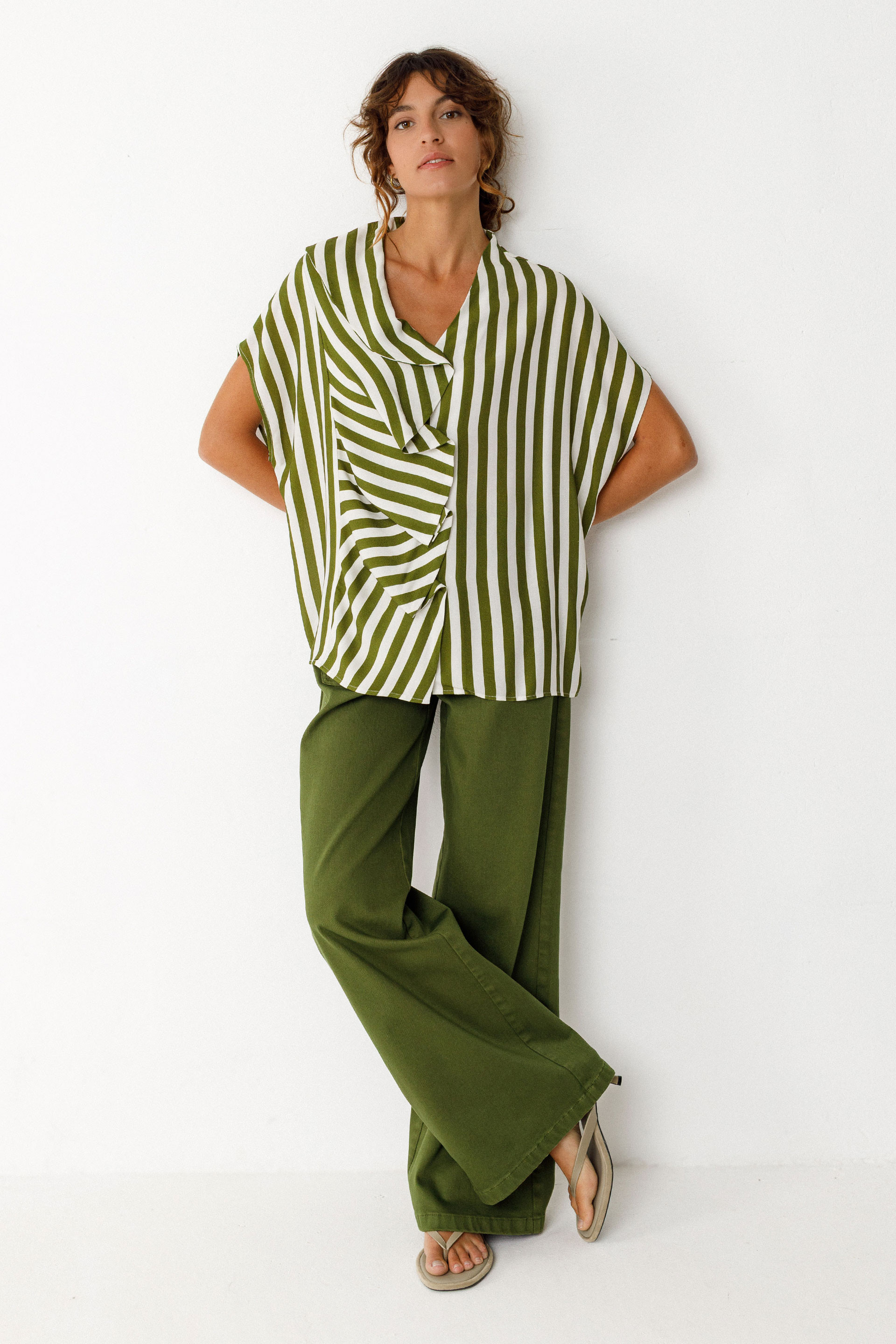 Camisa amplia sin mangas, de hombros caídos, con un cierre delantero abotonado con efecto plisado.