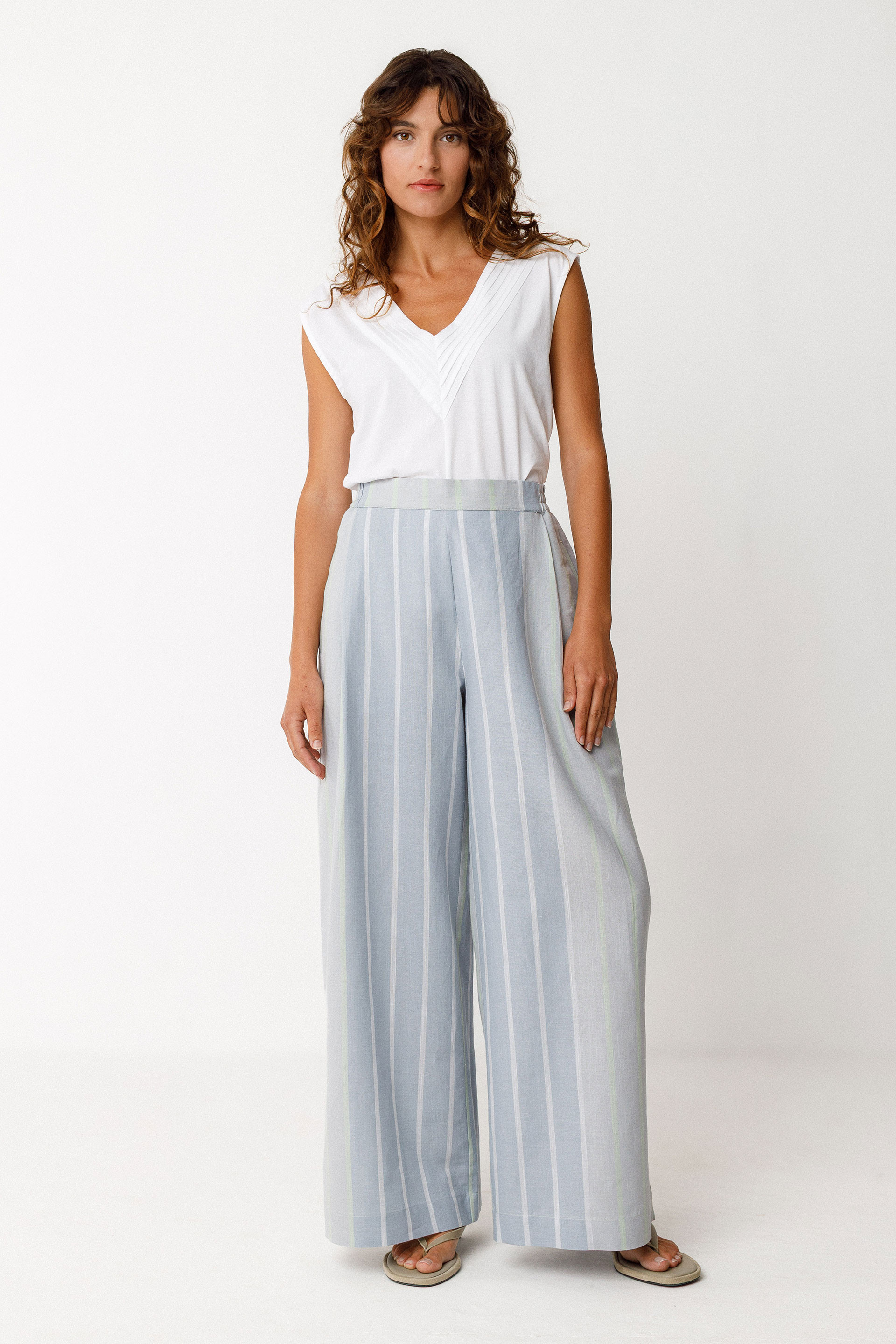 Top sin mangas con cuello de pico de algodón orgánico con certificado GOTS. Corte recto y detalles plisados en el escote.