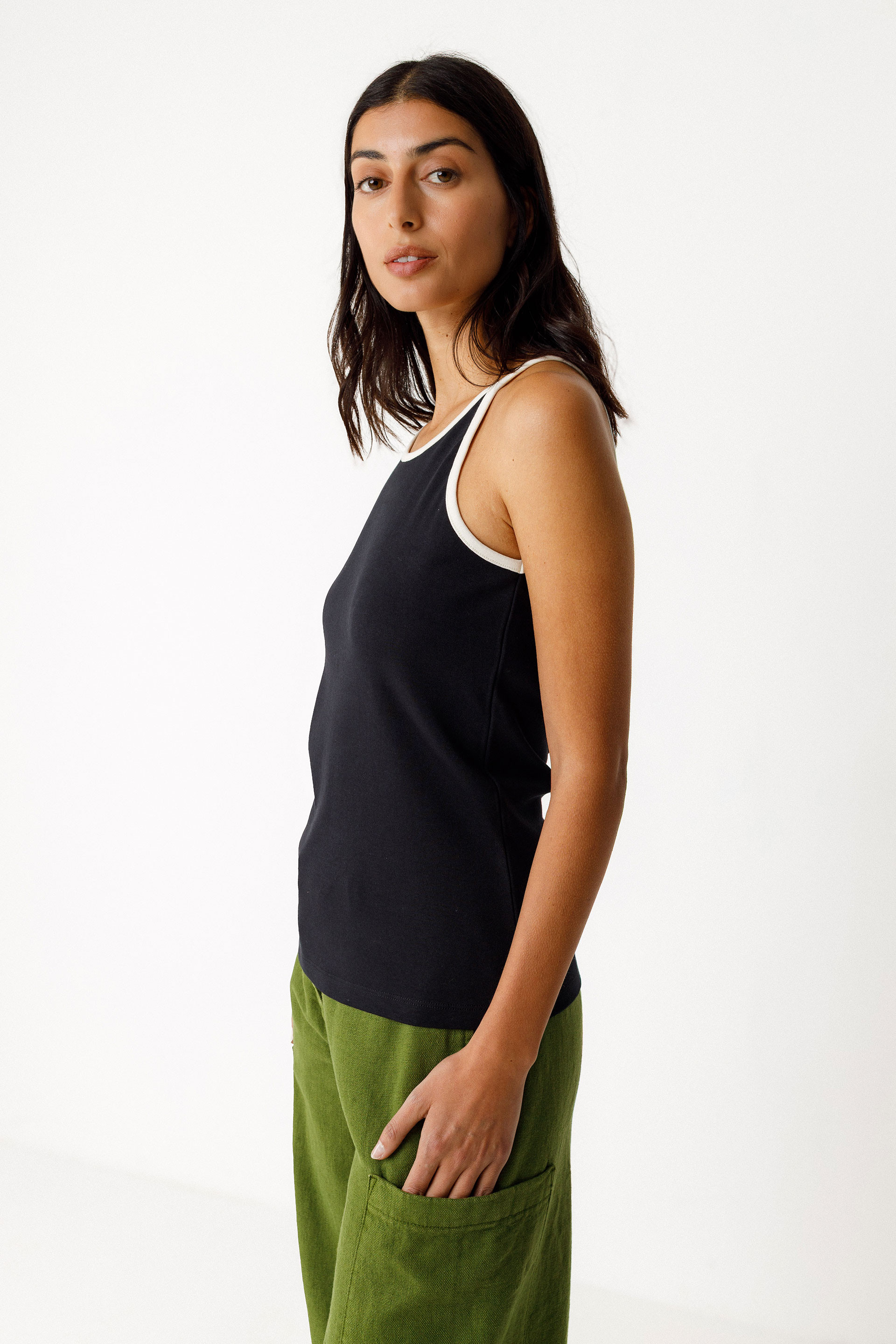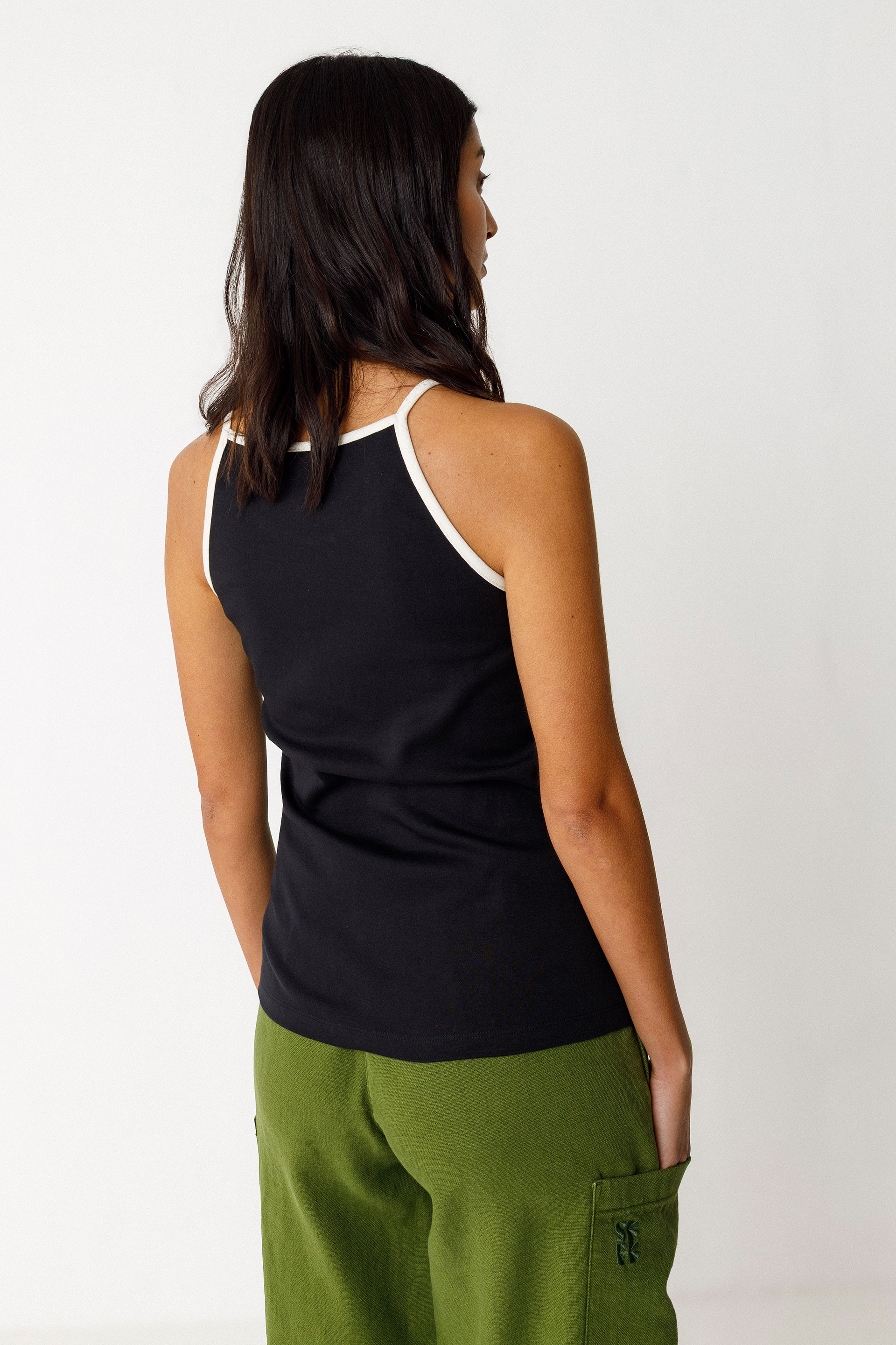 Camiseta de tirantes finos de corte ceñido y cuello redondo, confeccionada con algodón orgánico con certificado GOTS.
