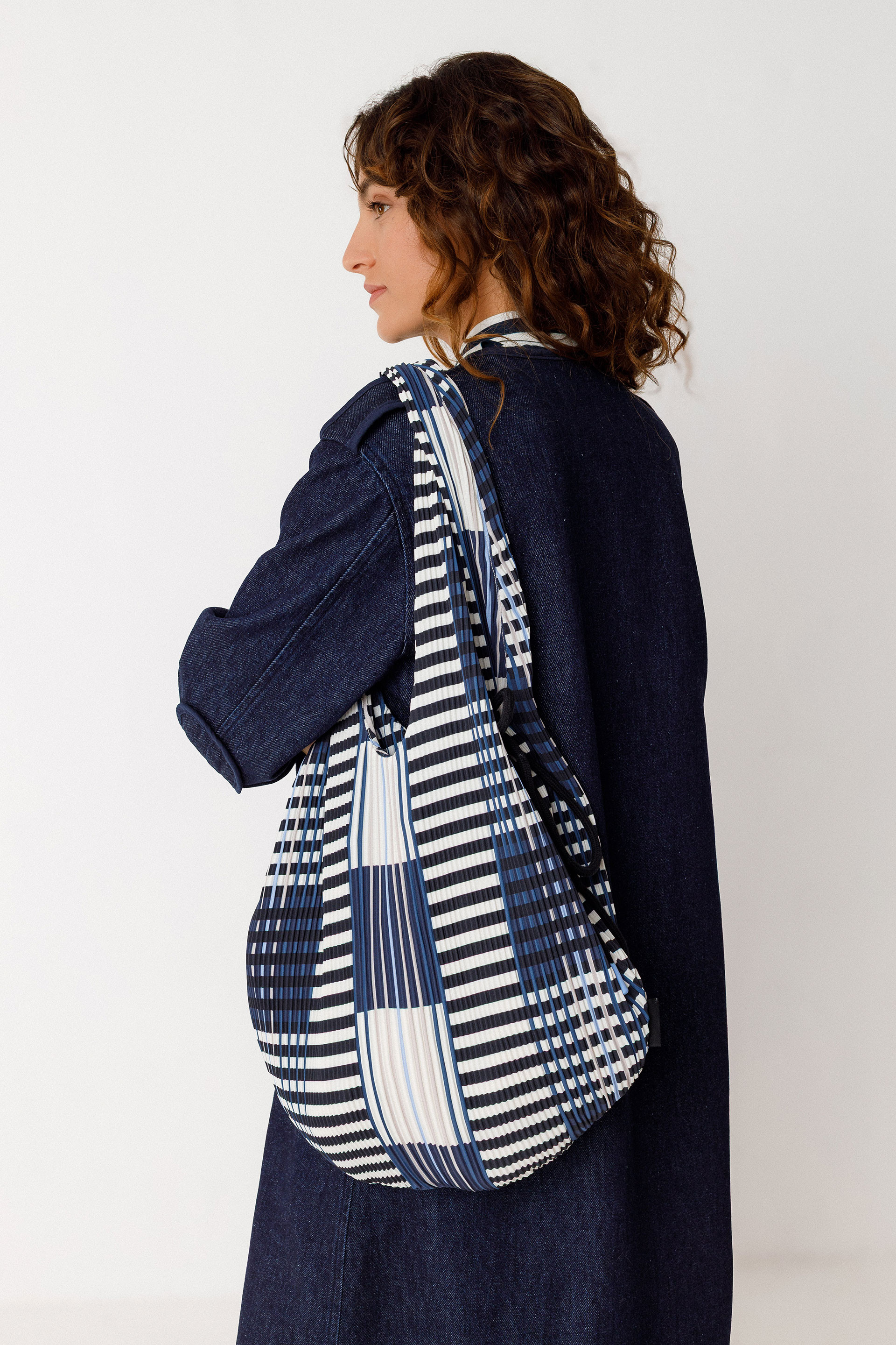 Tote bag poltsa, izurdun ehun estanpatuzkoa. Bi helduleku. Neurriak: 40 x 66 cm.