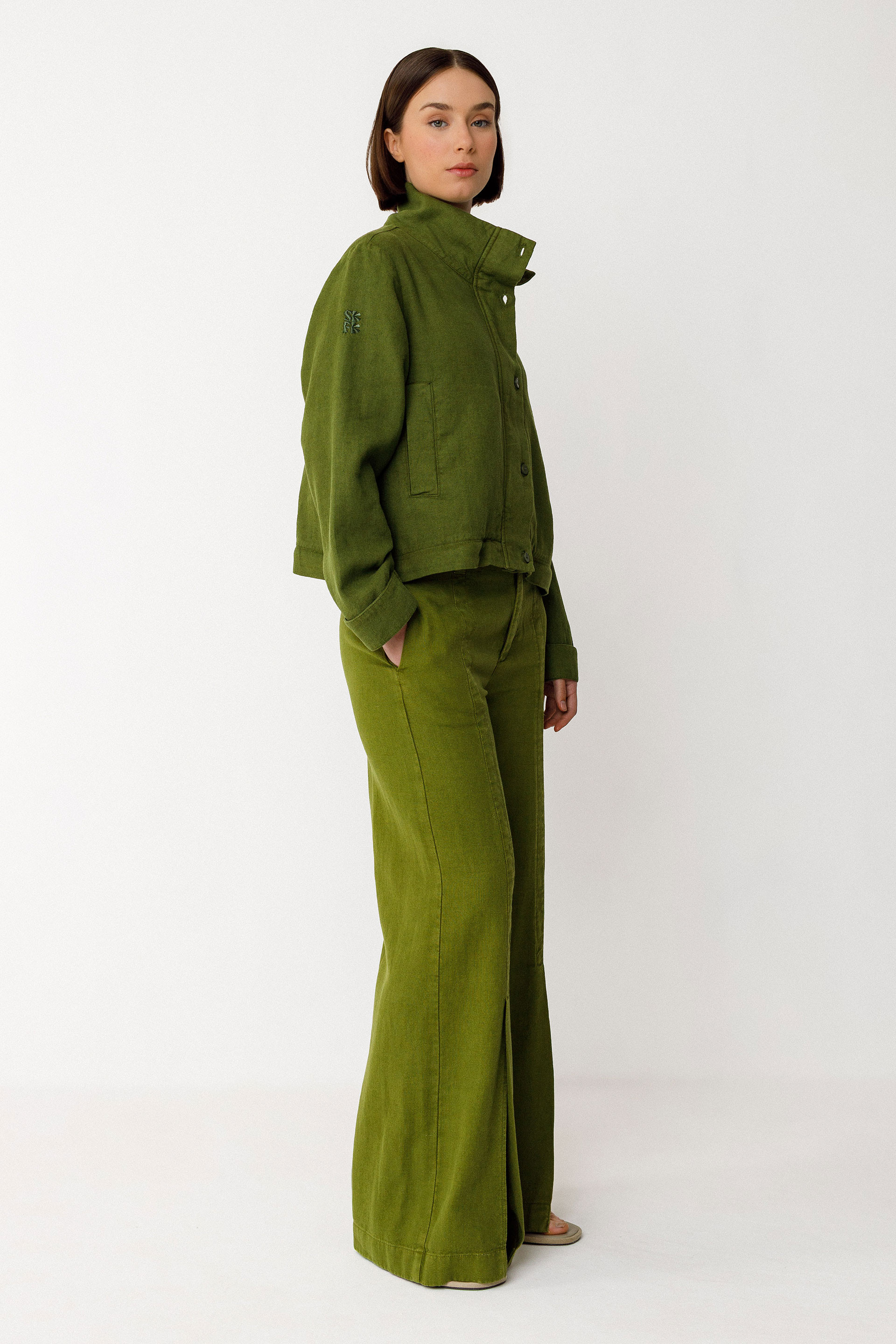Belaun azpirainoko gabardina zuzena. Bi batean: azpialdea desmuntagarria da. Lepo luzea, ixteko kremailera aurrean, poltsiko azpilduak goialdean eta petatxu-poltsikoak azpialdean.