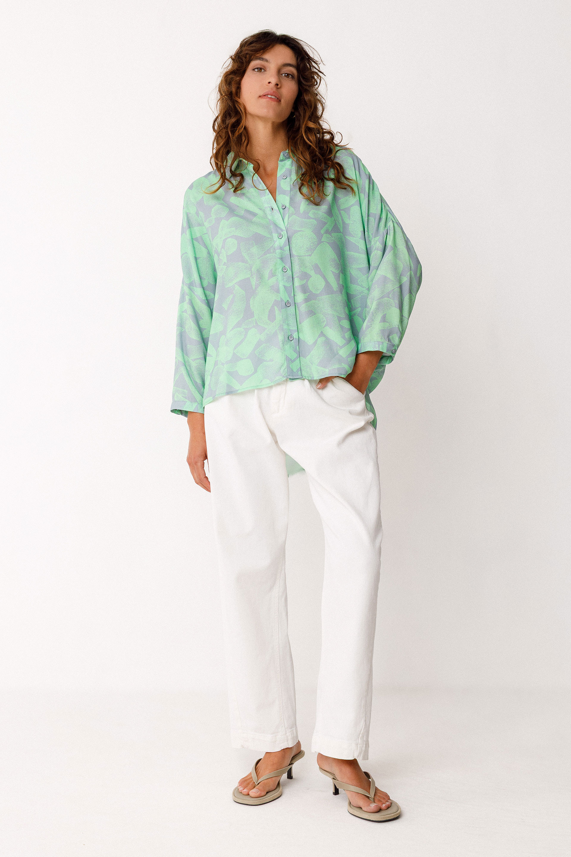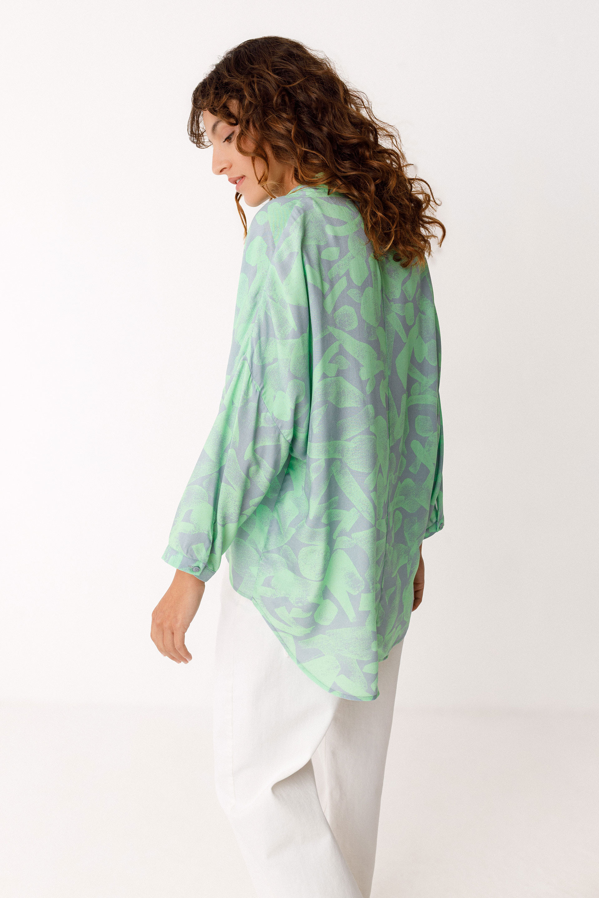 Alkandora, atzetik luzeagoa. Hiru laurdeneko mahuka, ixteko botoiak aurrean eta botoidun eskumuturrak.