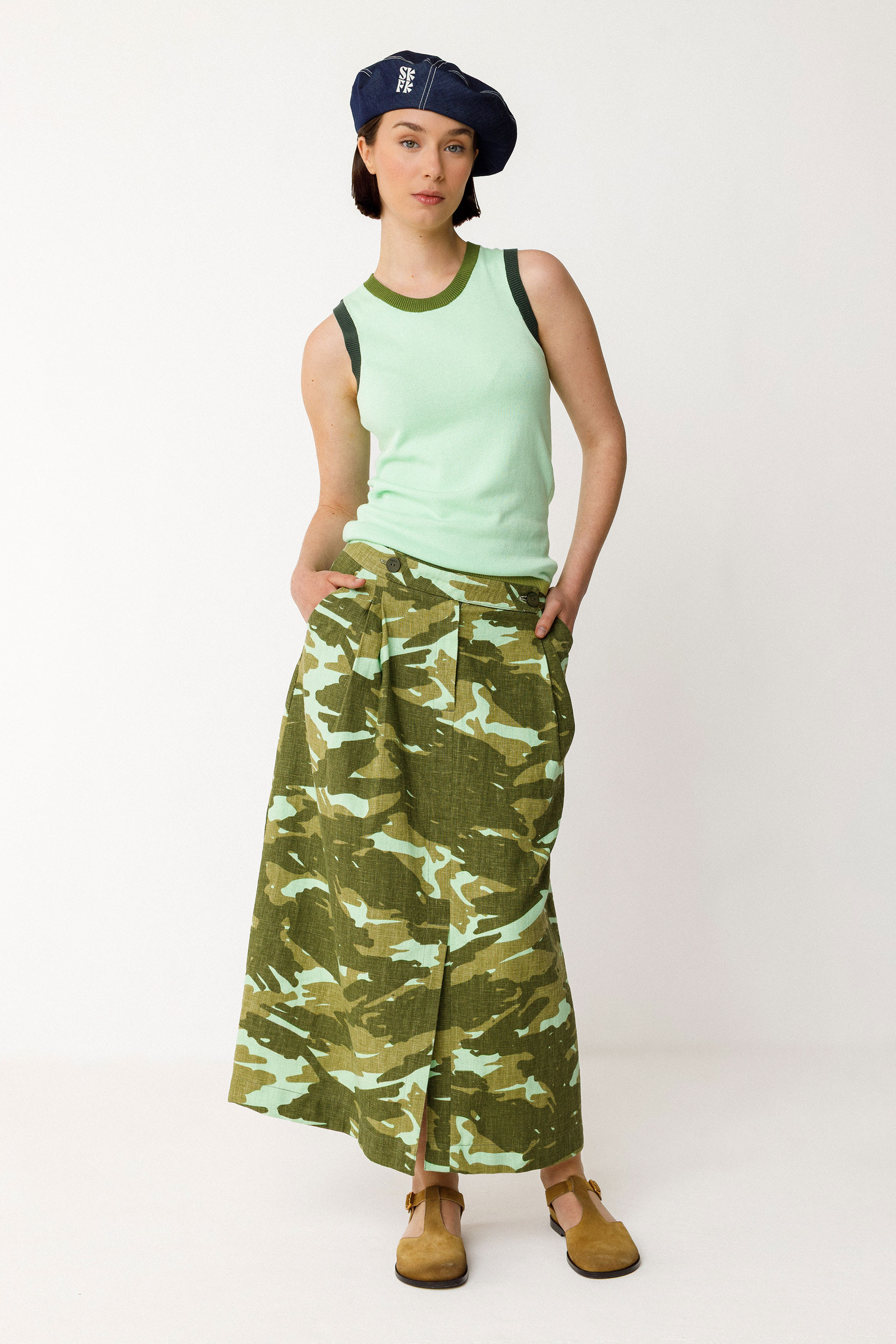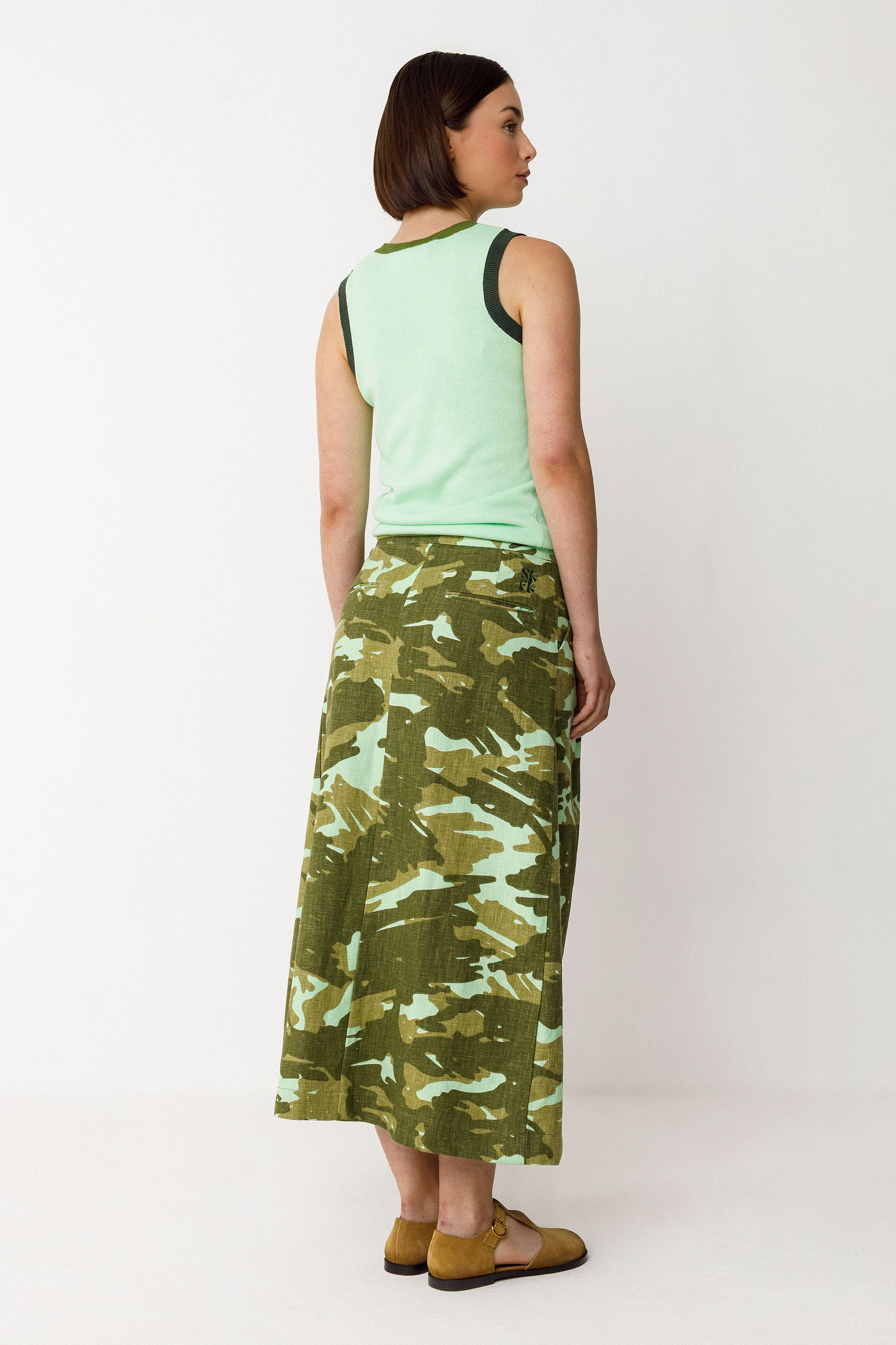 Midi gona barren-zabala. Kremaileradun brageta aurrean, poltsikoak alboetan eta irekidura aurrealdean, erdian.