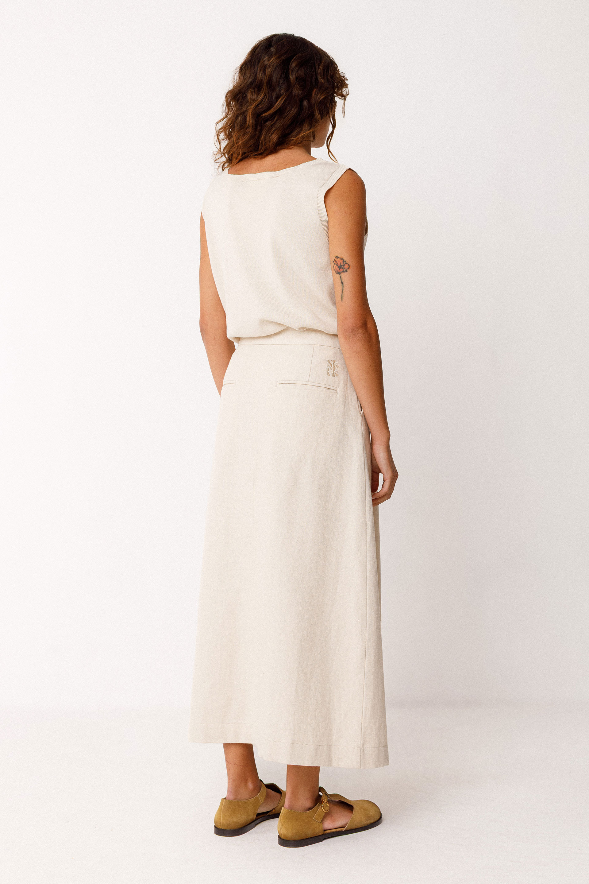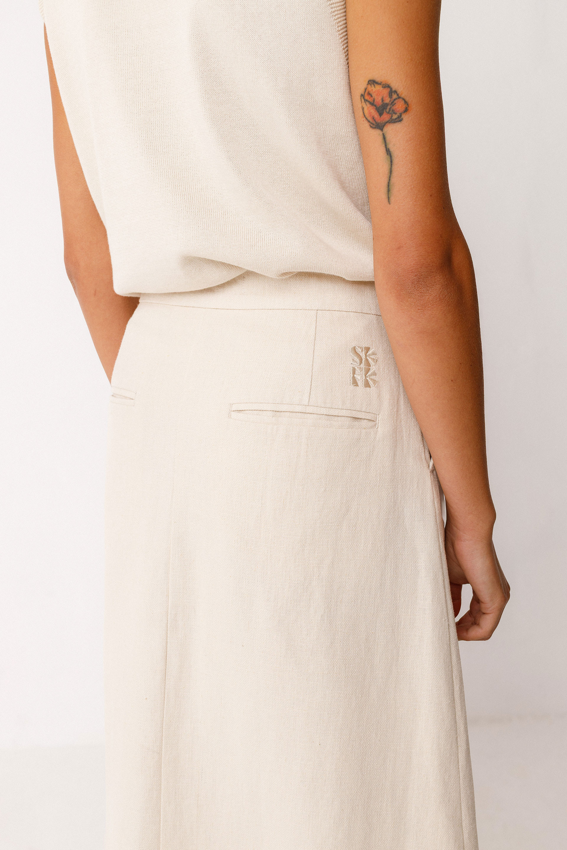 Midi gona barren-zabala. Kremaileradun brageta aurrean, poltsikoak alboetan eta irekidura aurrealdean, erdian.