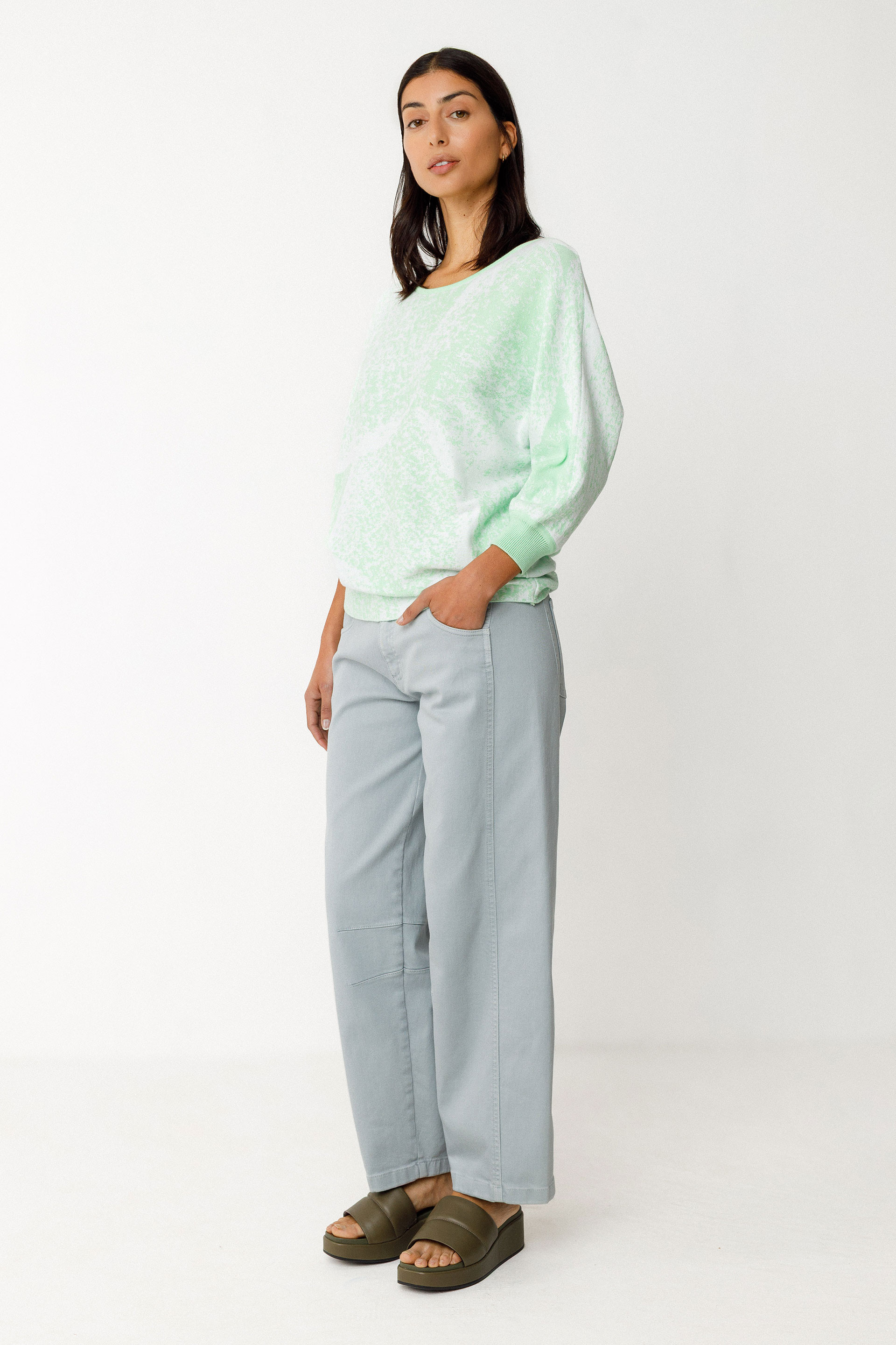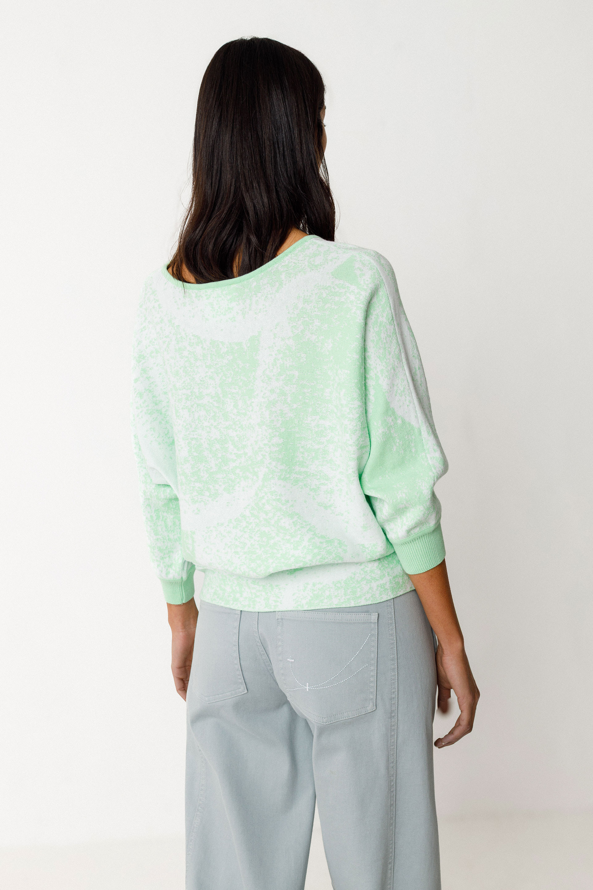 Jertsea, kotoi organikoko puntu ez oso lodizkoa. Lepo biribila, saguzar-mahuka eta kanale-puntuzko erremate apaingarriak eskumuturretan.
