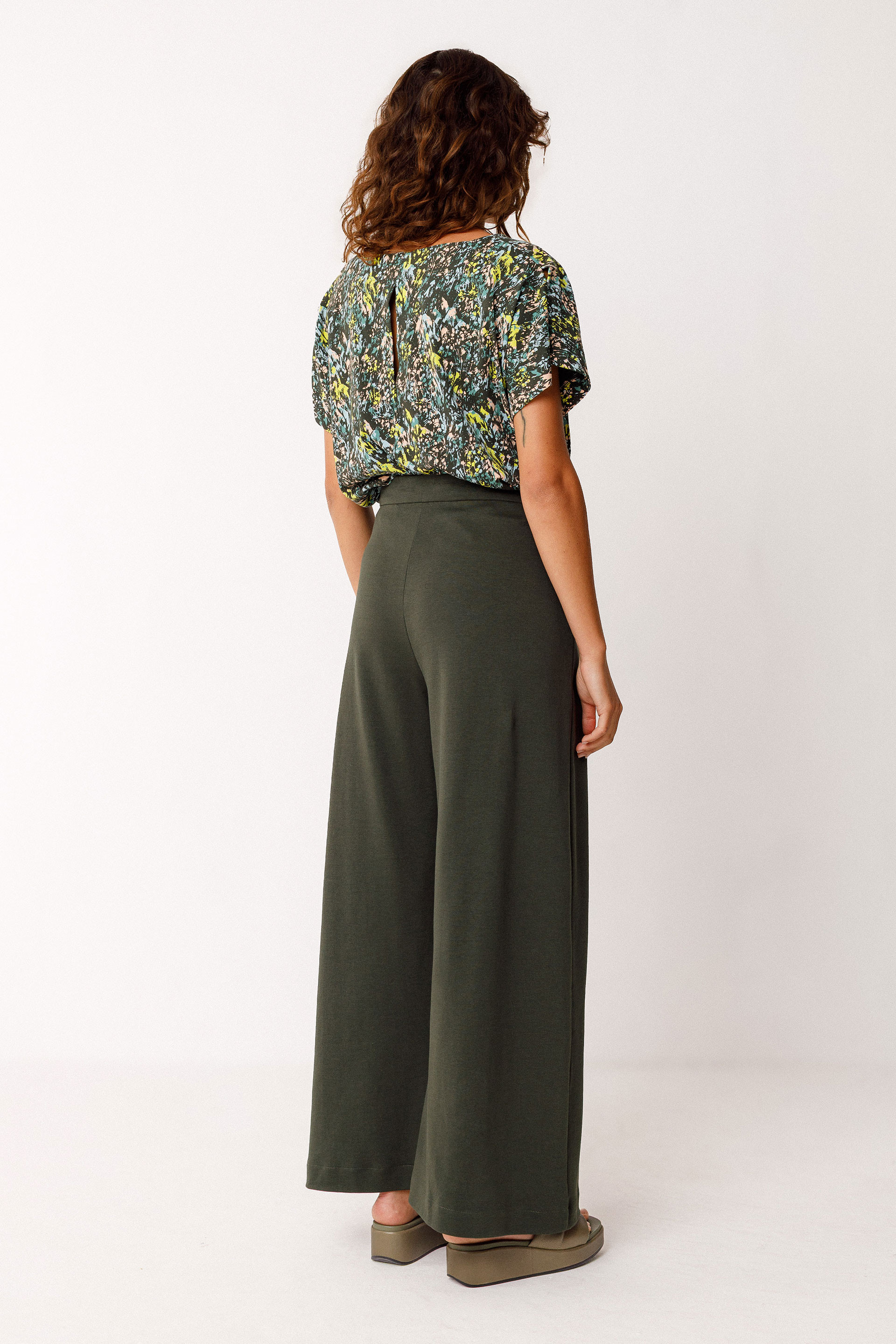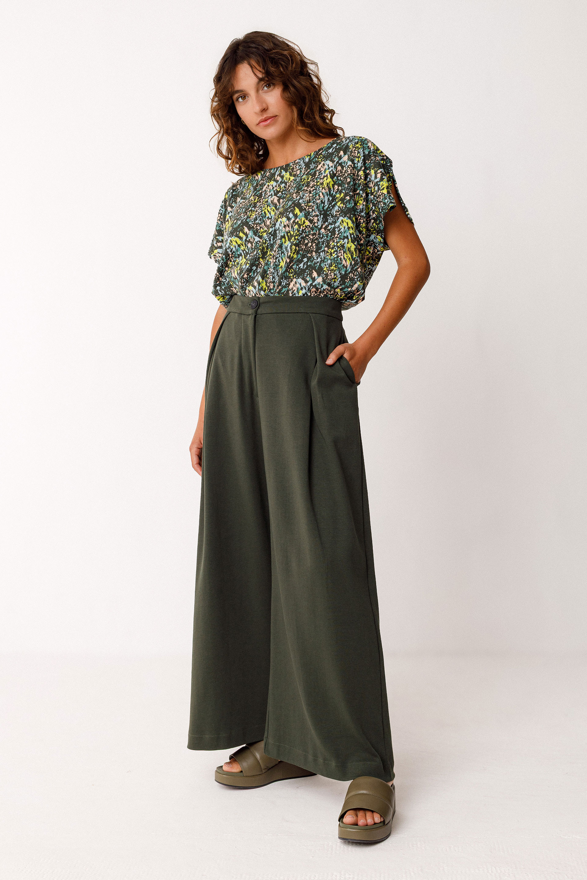 Hanka zabaleko galtza luzeak. Kremaileradun brageta eta izur drapeatuak aurrealdean. Luzera osoa 38 neurrian: 100 cm.