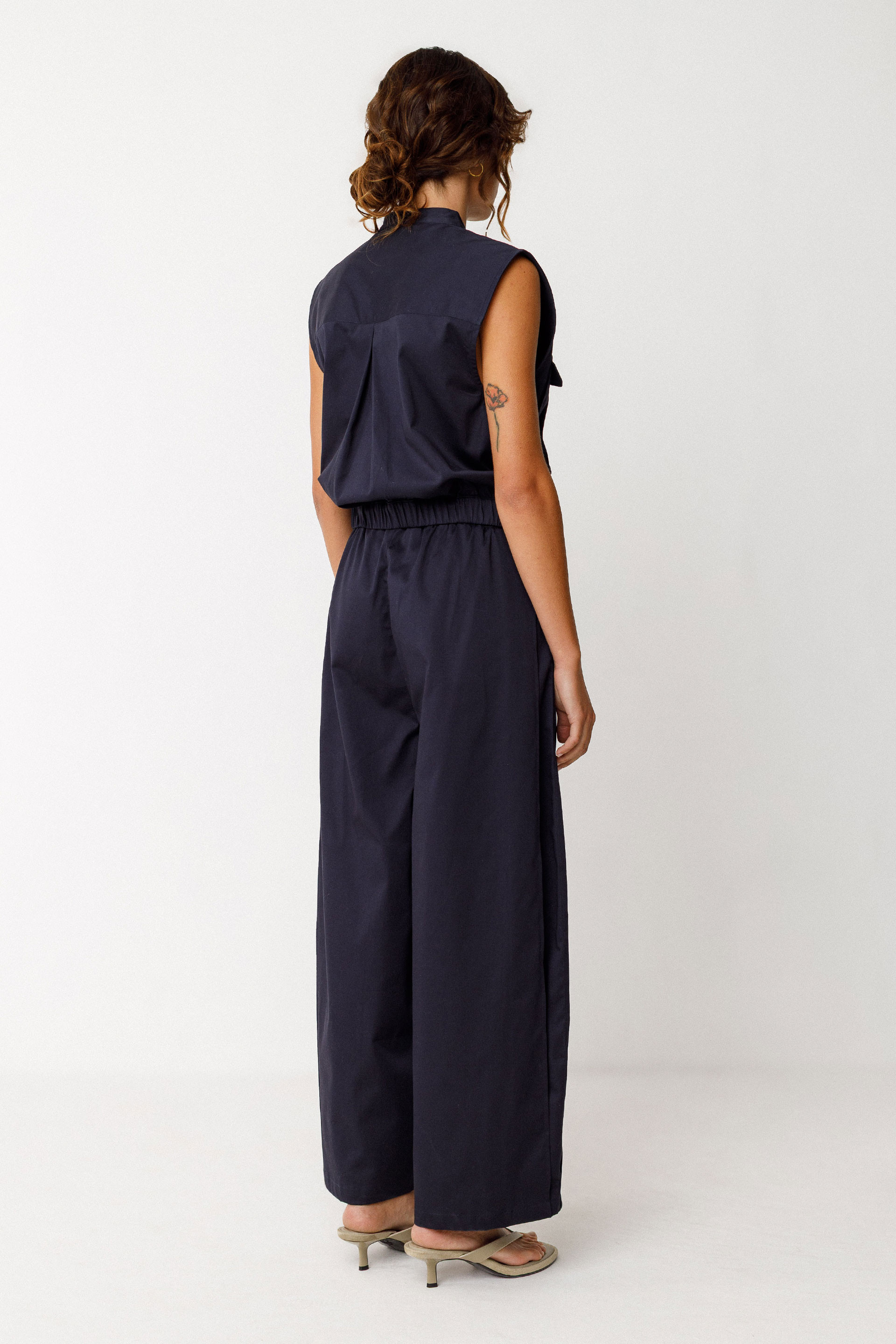 Orkatilarainoko galtza zabalak. Izur apaingarriak, gerri elastikoa eta poltsikoak alboetan. Luzera osoa 38 neurrian: 95 cm.