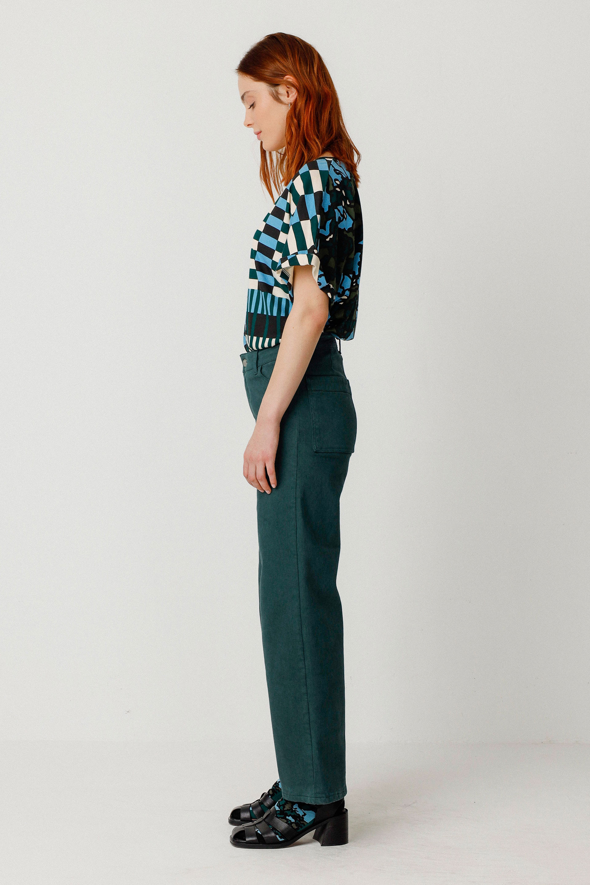 Galtza zuzenak. Hanka zabala, poltsikoak aurrean eta atzean eta ixteko kremailera aurrean. Espainian fabrikatua. Estilo atenporala eta xehetasun praktikoak.