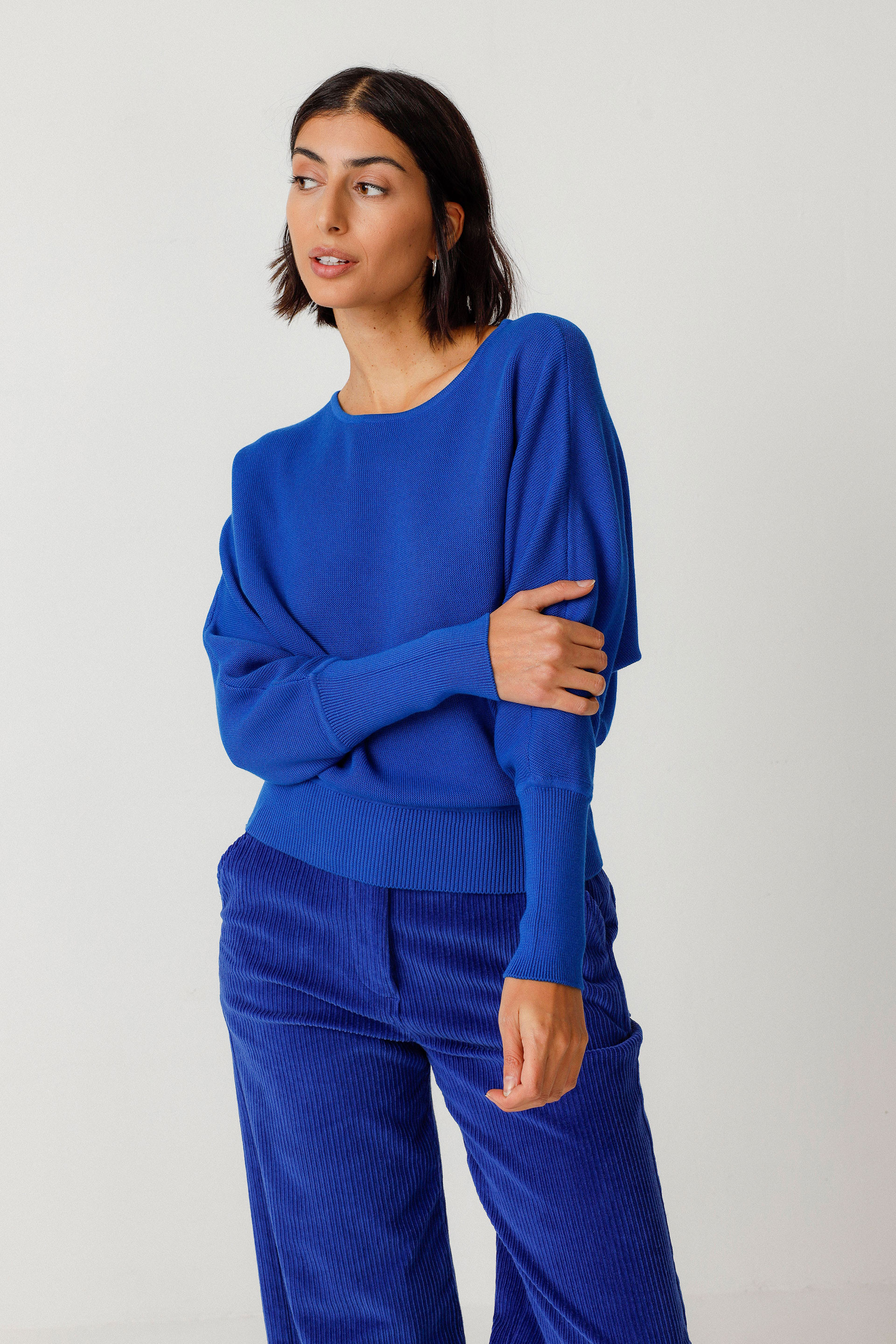 Bobo puntuzko jertsea. Lepo biribila eta dolman mahuka. Itxigailurik gabea. Jantzi eroso eta informala. GOTS ziurtagiria duen kotoi organikoa.