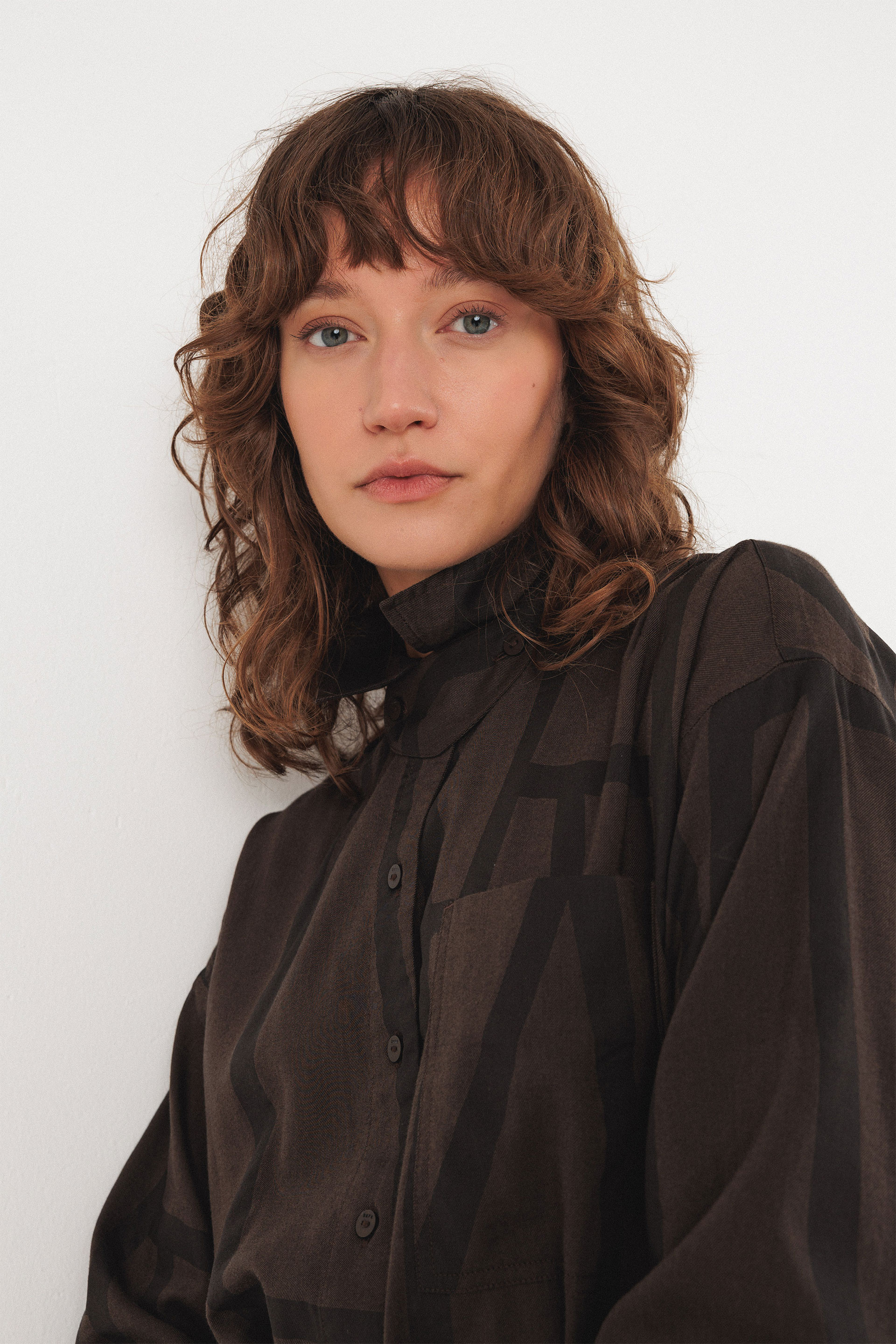 Alkandora-soineko motza. Ixteko botoiak aurrean eta eusteko errefortzua duen lepo klasikoa. Gerrikoa kendu daiteke.