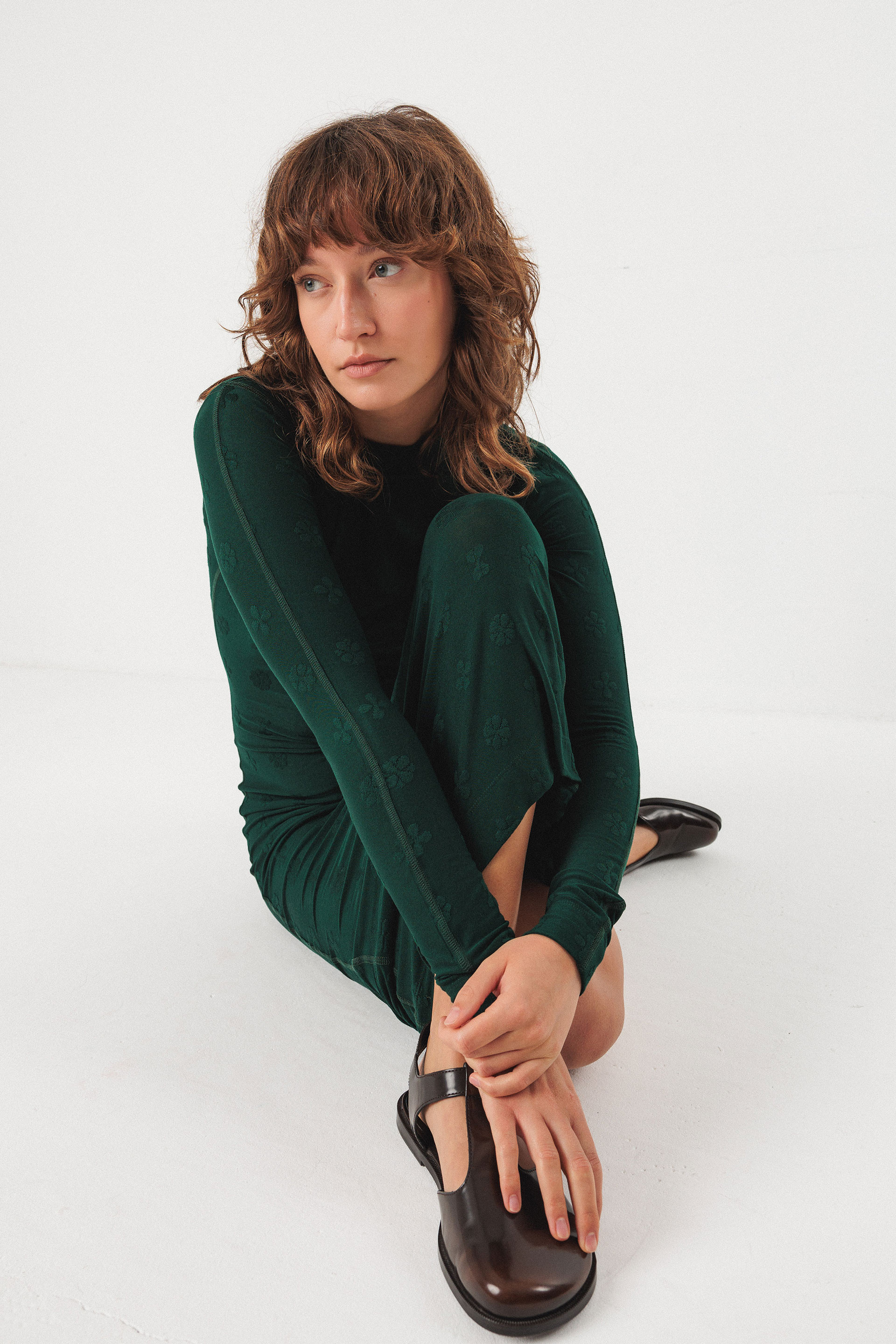 Orkatilarainoko soinekoa, stretch ehunezkoa. Luzea eta estua. Mahuka luzea, lepo luzea eta atzera-puntada apaingarriak. Janzteko erraza.