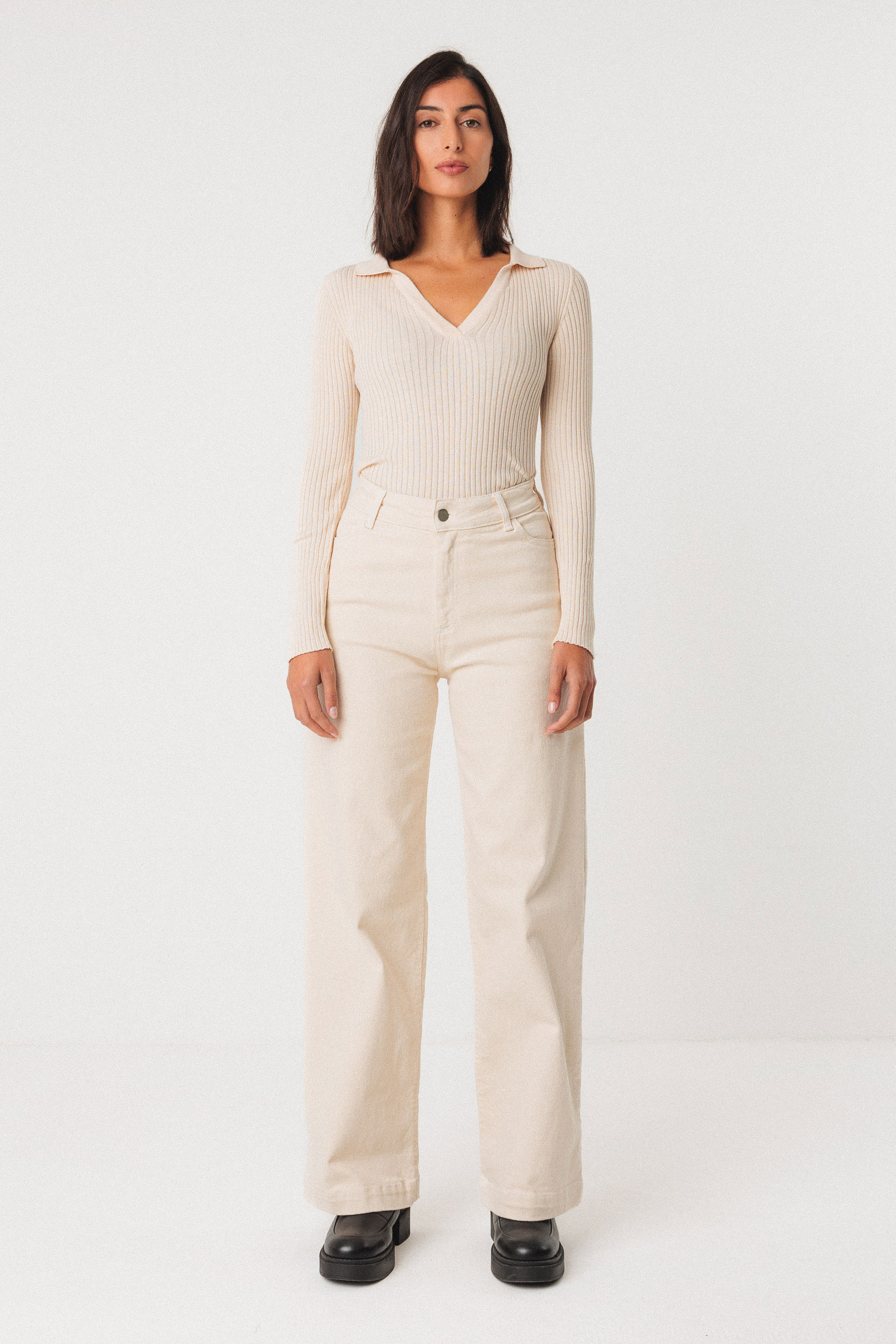 Kamiseta fin eta estua, kanale puntuzkoa. Mahuka luzea eta polo-lepoa.