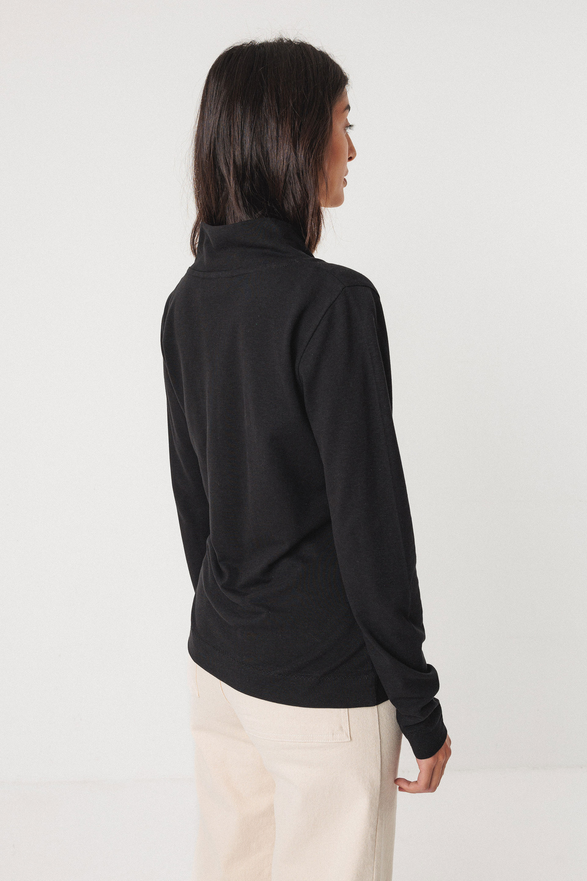 Kamiseta estua. Mahuka luzea eta lepo puntaduna. Efektu drapeatua.