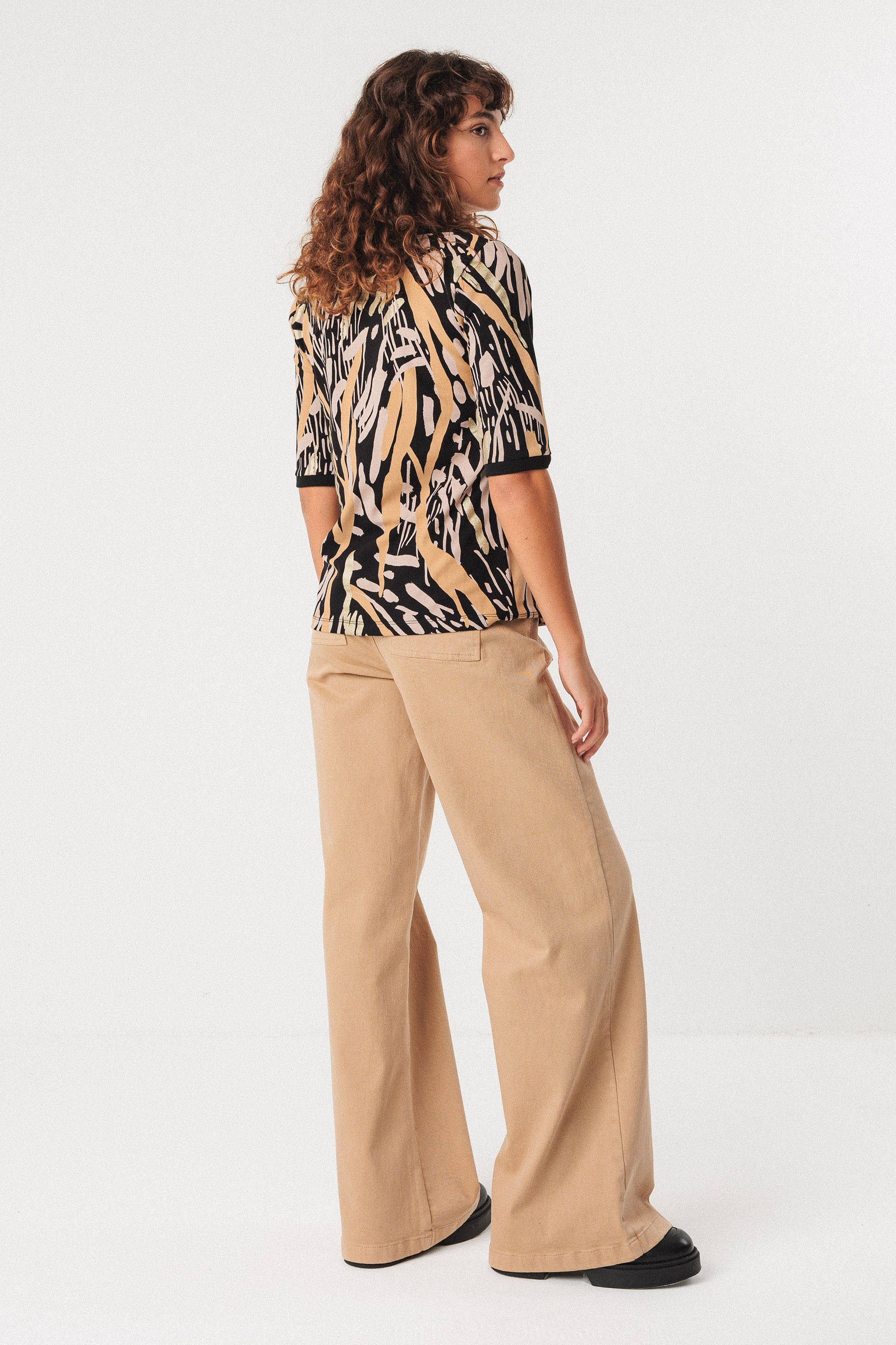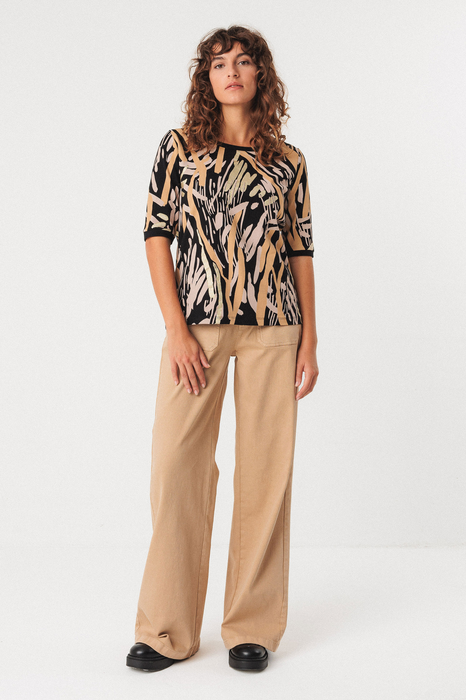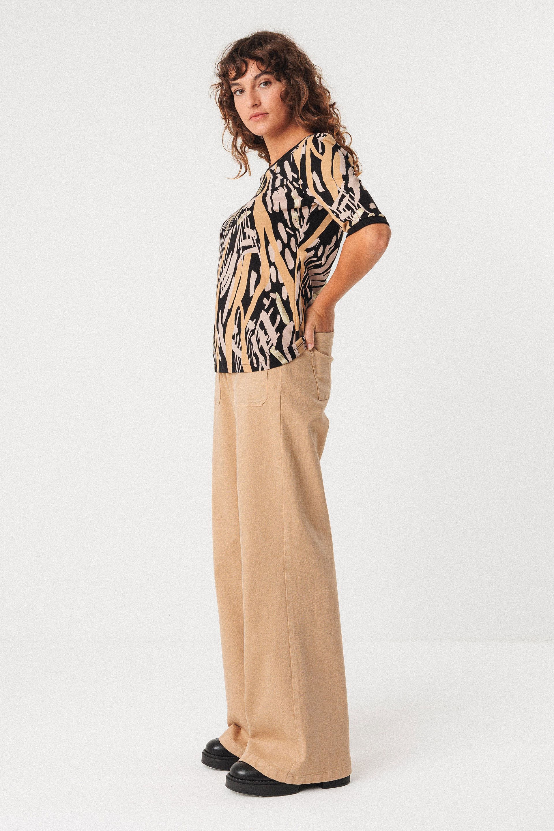 Kamiseta estua. Itsasontzi-formako lepoa eta kanalezko erremateak eskotean eta mahuketan.