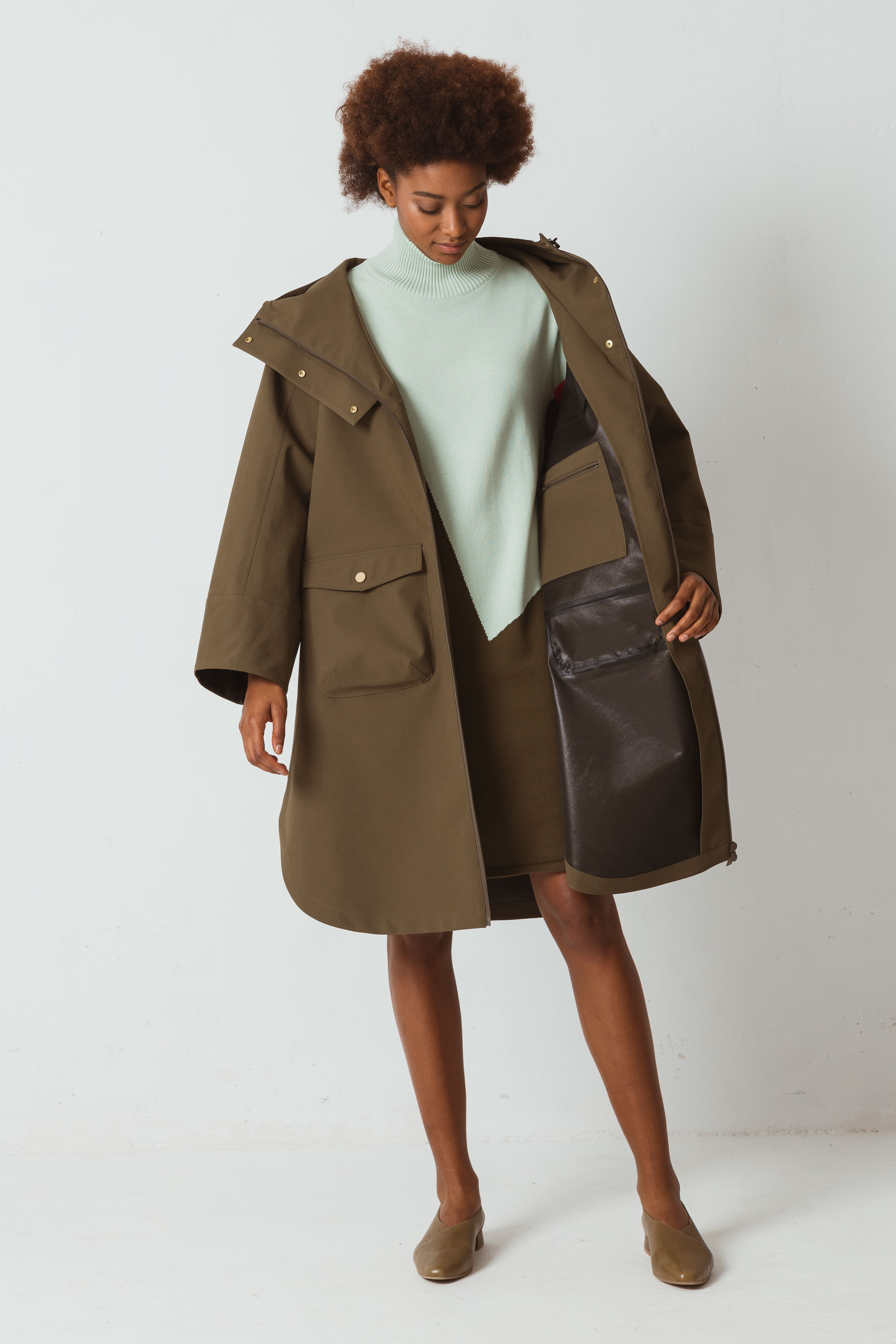 Zira funtzionala, Poliester birziklatuz egina, forma zabala eta babeslea du. Kaputxa doigarria du, petatxu sakela zabalak, bi lerragailuko kremailera, irekidura botoidunak alboetan, bizikletan joatean askeago mugitzeko. Urarekiko erresistentzia: 5000 mm, transpiragarritasuna: 3000 g/m2/24 h. PFCrik ez duen hidrofobiko iraunkorra. Oliba berde iluna. Zaborretara bota beharrean, plastikozko botilak erabil daitezke janzki berriak egiteko. Janzki hauek bigunak eta iraunkorrak dira, eta ekoizpenean aurrezpena dakarte.