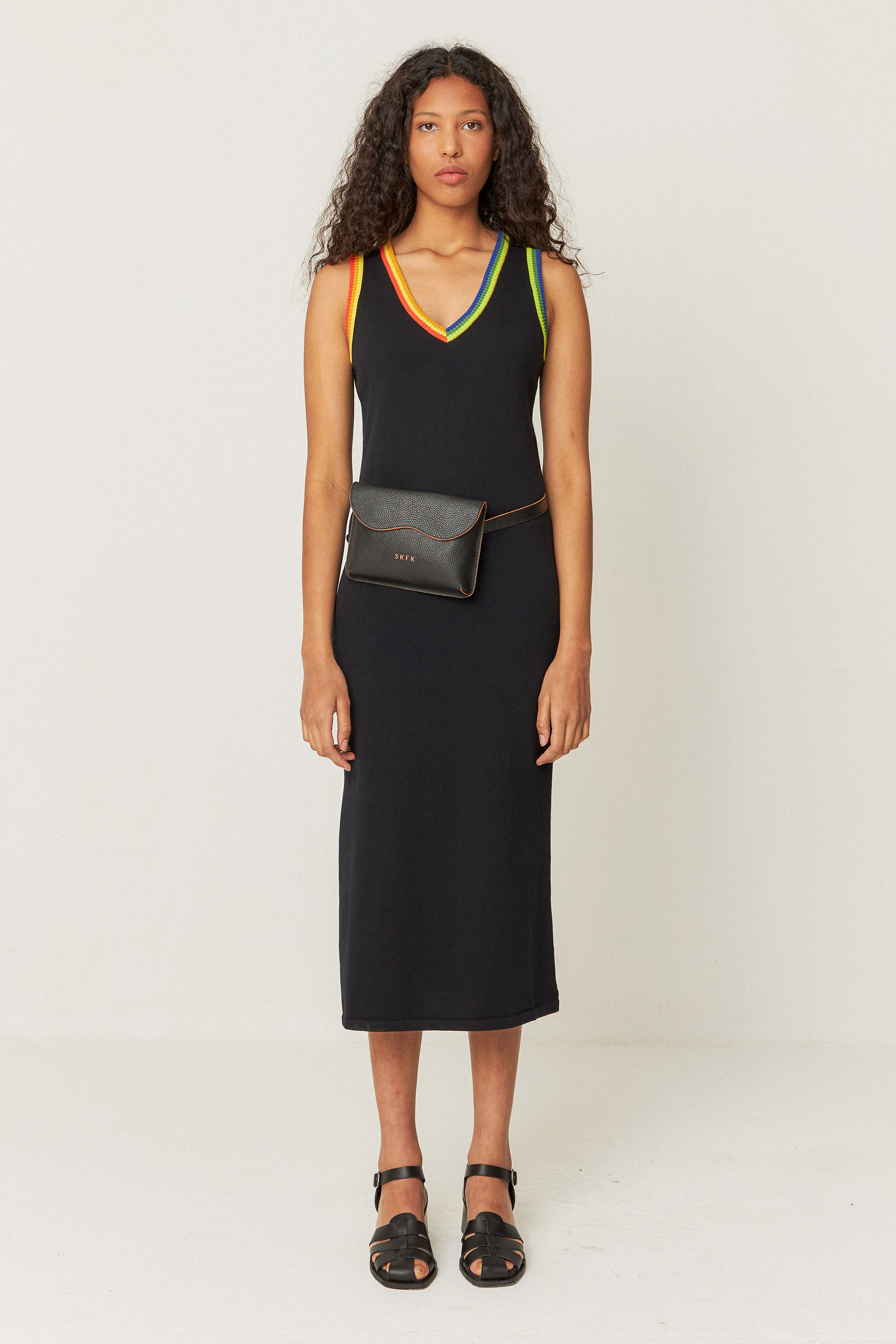 Larruzko gerriko-poltsa. Gerriko doigarria eta ixteko presio-botoia. Guztiz forratua. Neurriak: 25 x 15 x 5 cm.