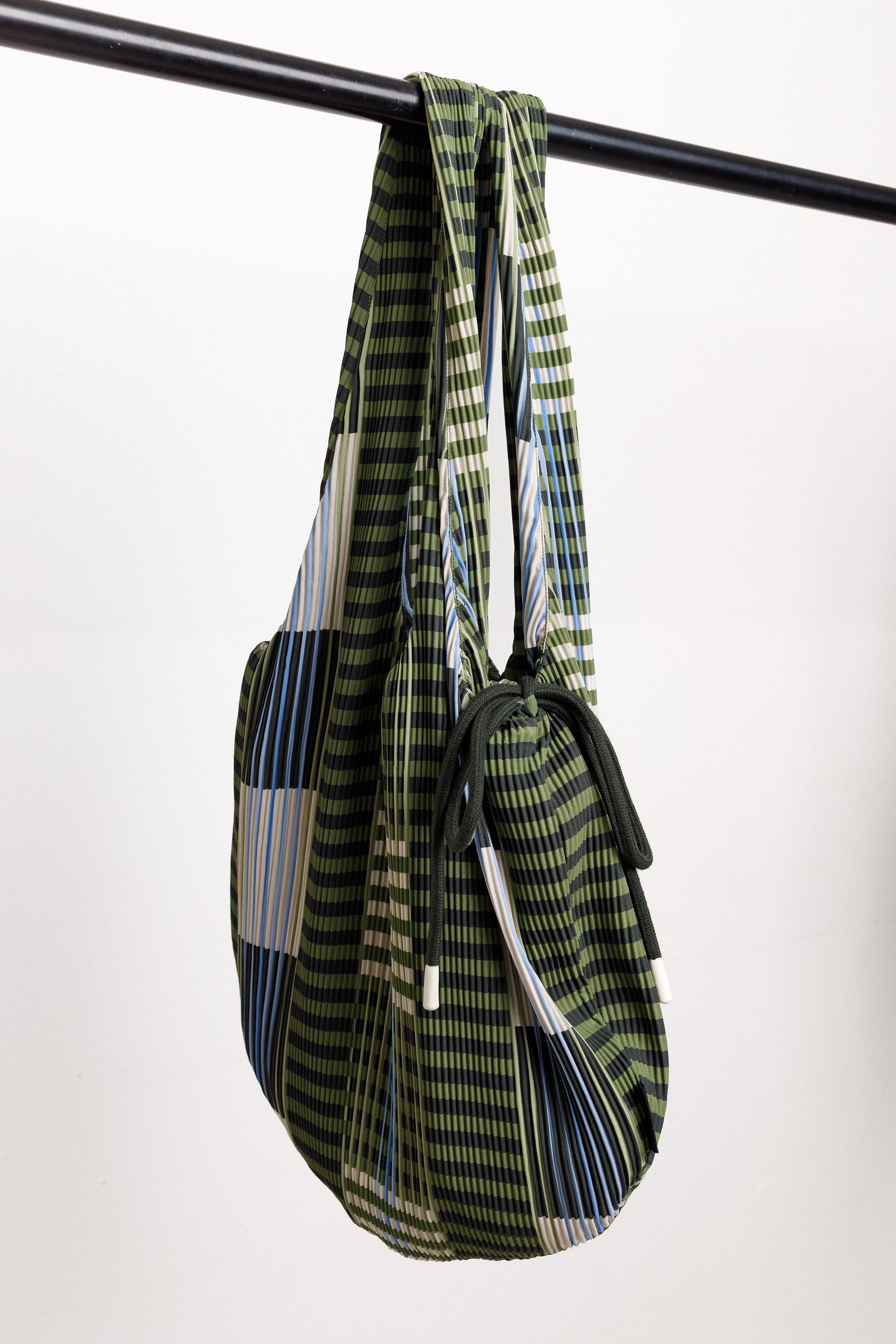 Tote bag en tissu plissé imprimé avec deux anses. Dimensions 40 x 66 cm.