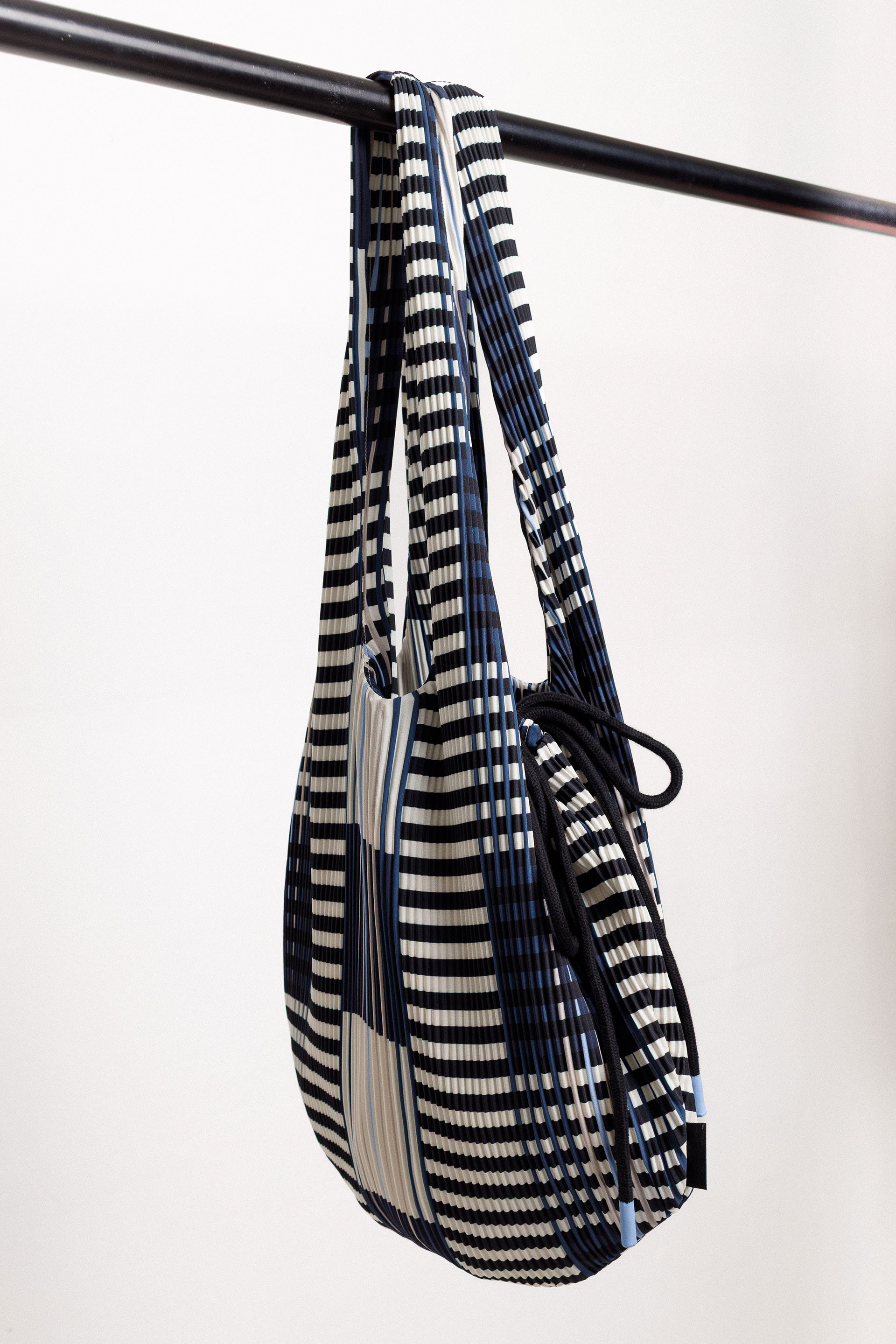 Tote bag en tissu plissé imprimé avec deux anses. Dimensions 40 x 66 cm.
