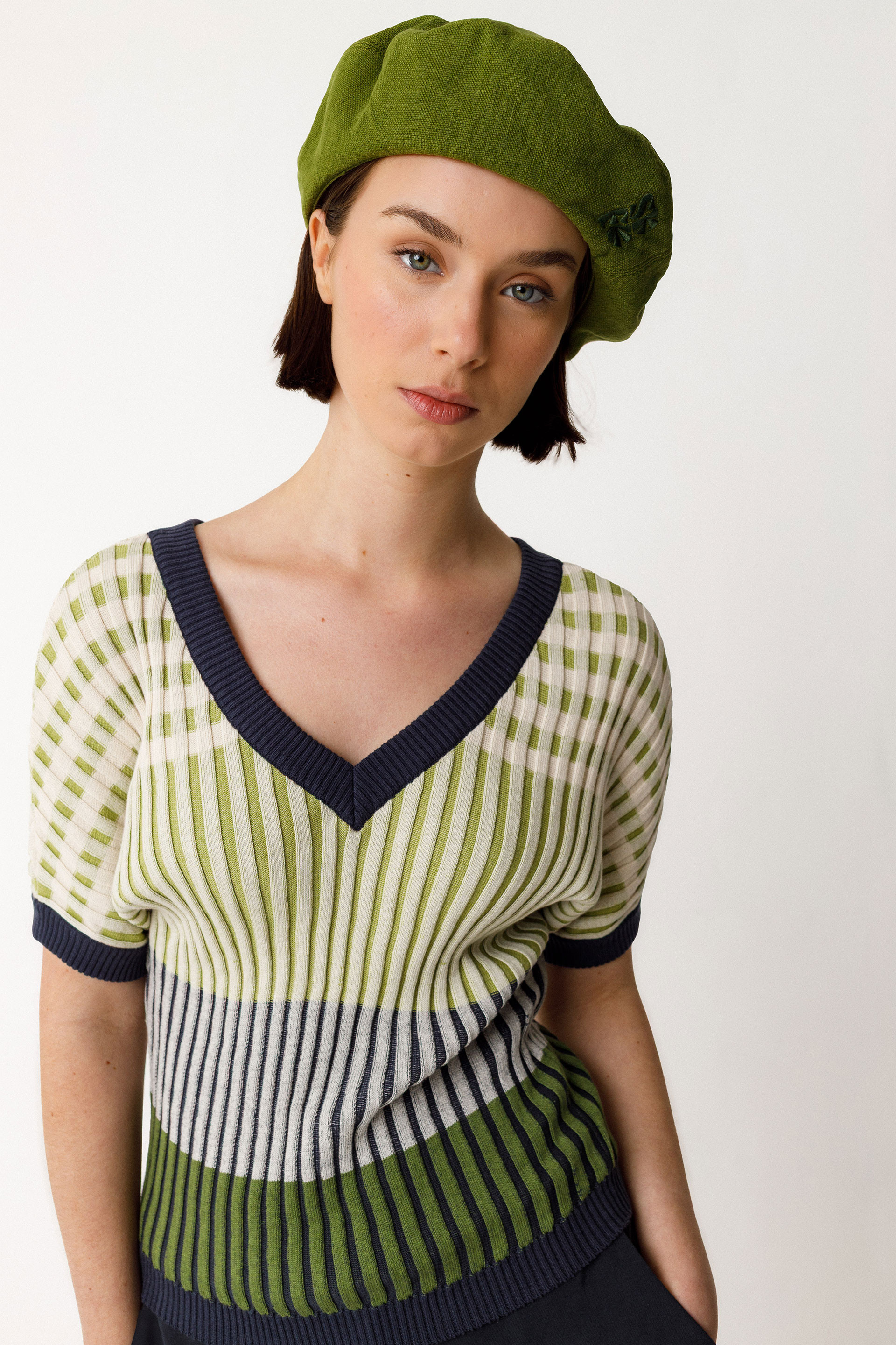 Béret imprimé en lin et coton biologique avec logo brodé.